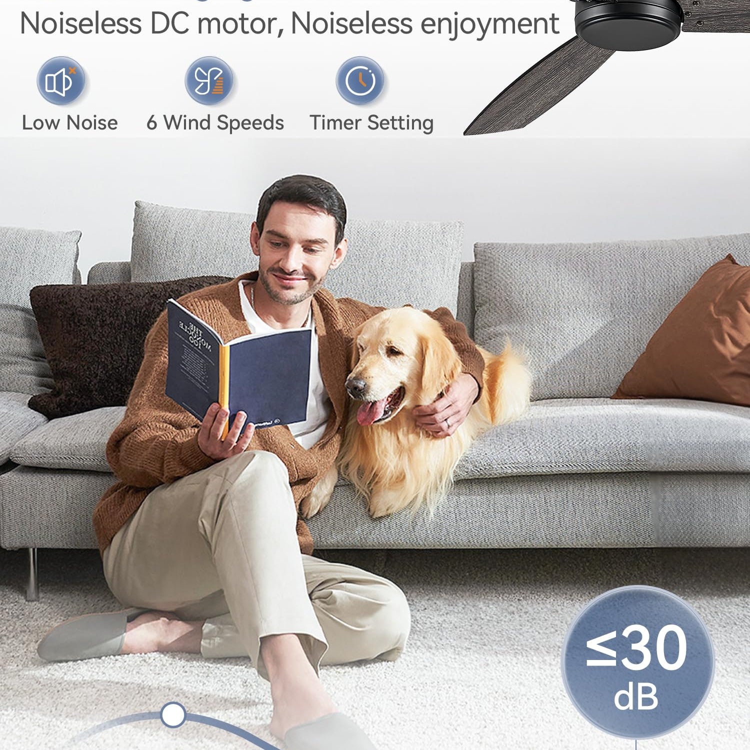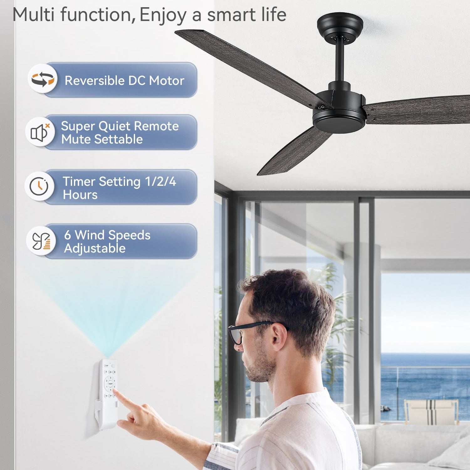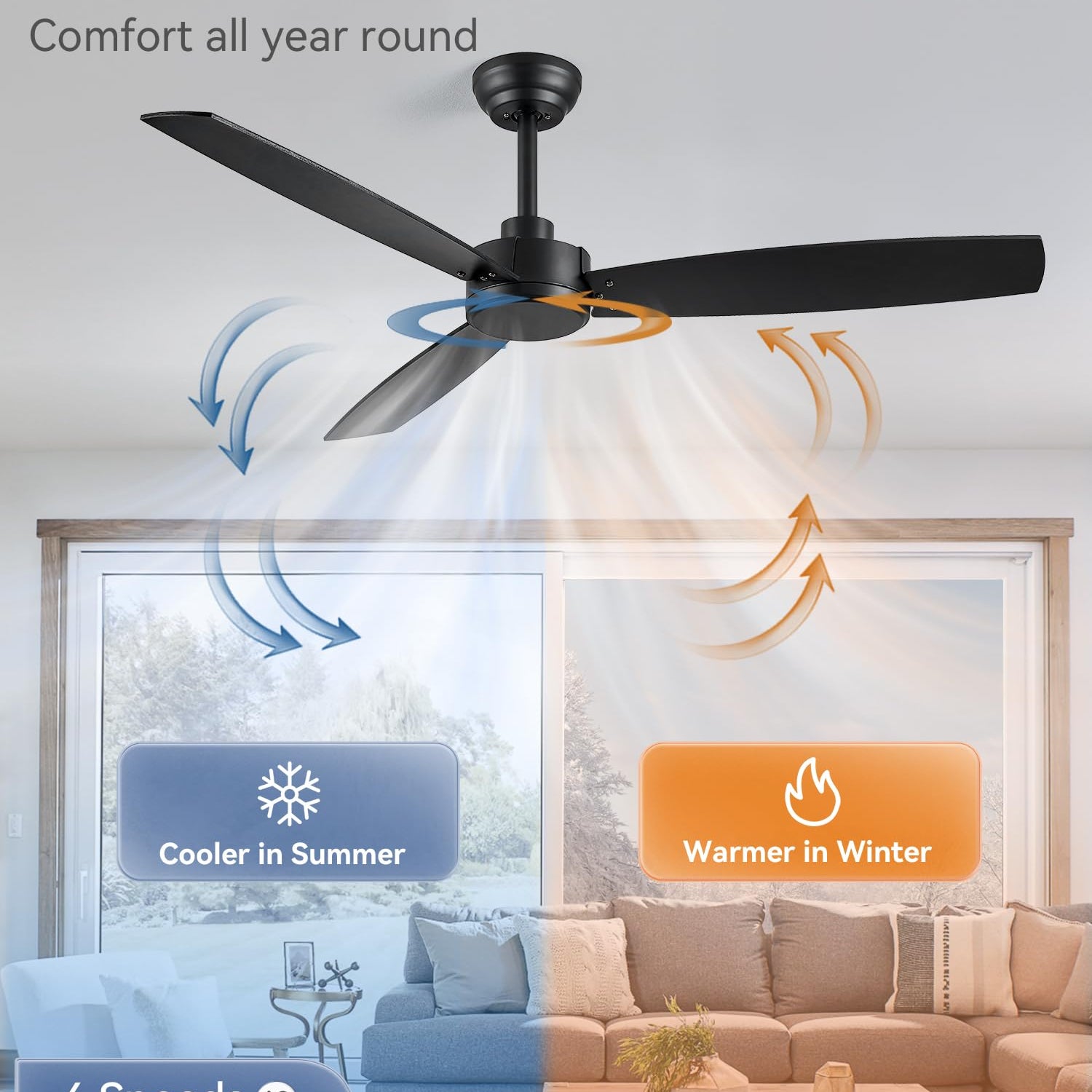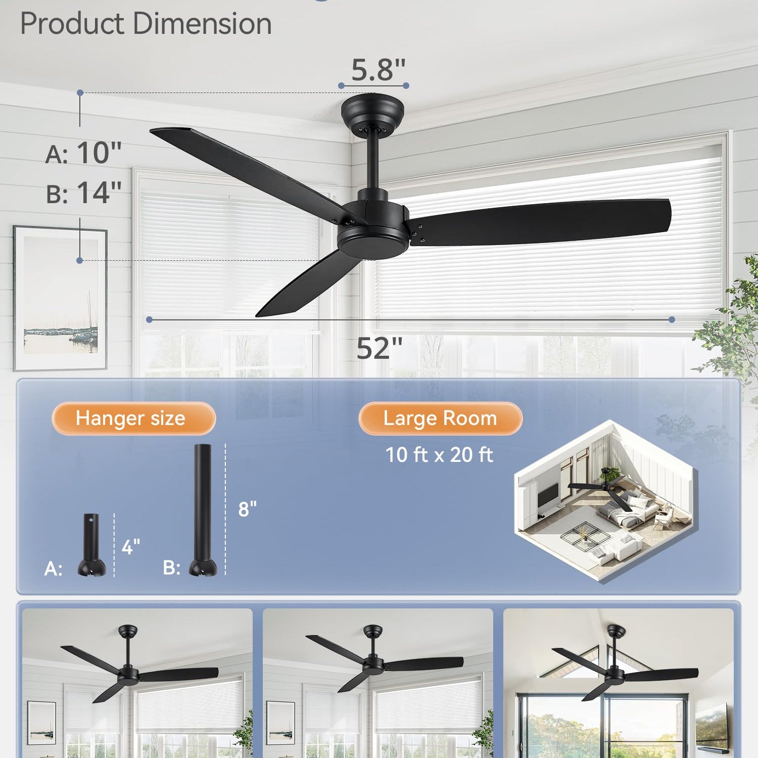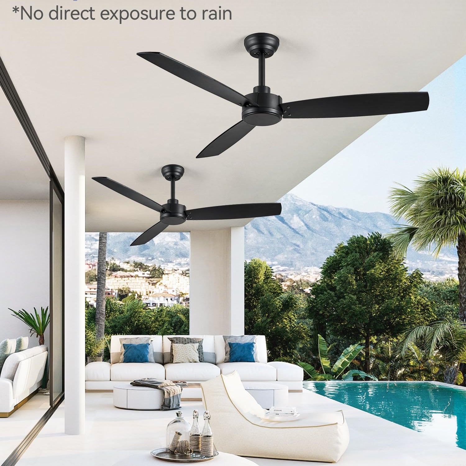 ZMISHIBO 2 Pack 52 Inch Outdoor Ceiling Fans with Remote, Black Ceiling Fan No light with Quiet Reversible DC Motor, 6 Speeds, 3 Blade Modern Ceiling Fans for Patio Living Room Bedroom Indoor