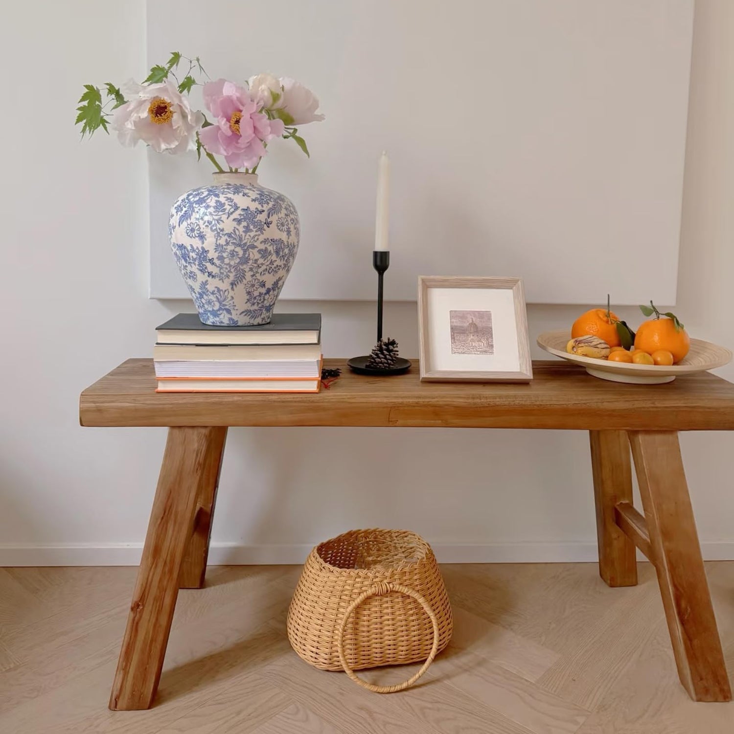 Details: This farmhouse-style wooden bench is made from naturally air-dried elm wood sourced from the Yellow River Valley, ensuring durability and natural beauty. The unique grain patterns of each piece highlight the rustic charm and solid wood appeal. Its simple and functional design creates a warm atmosphere. The bench is suitable for various spaces, including the kitchen, hallway, and porch, and works perfectly as a dining bench or bed-end bench, easily adapting to different home environments. Crafted with traditional mortise and tenon joinery, it provides stability and durability without the need for modern fasteners. The assembly is straightforward, requiring only basic tools, combining classic craftsmanship with modern convenience.This bench perfectly blends practicality with timeless design, making it an ideal addition to any home.