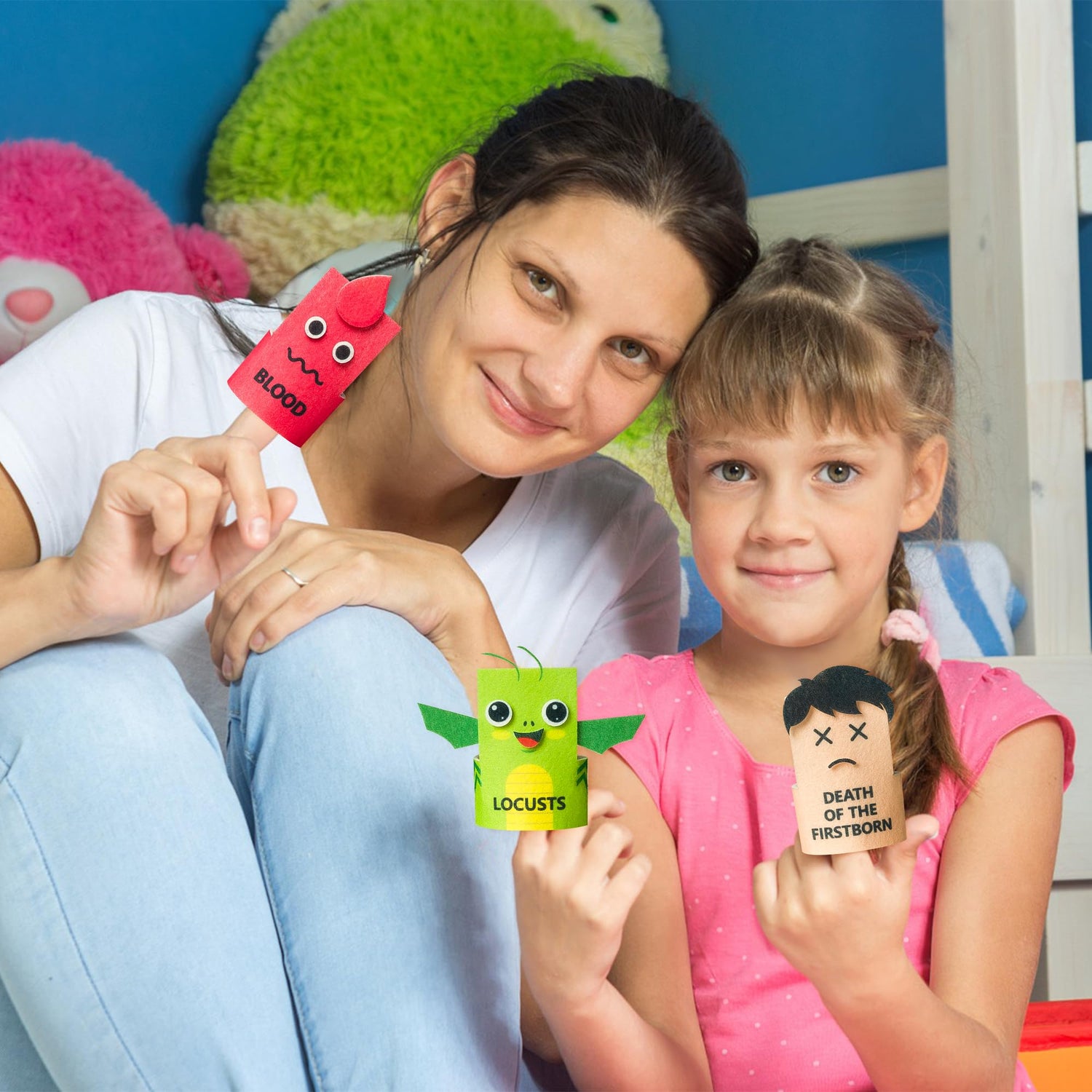 - Value Set: The package comes with 30pcs ten Plague Finger Puppets (in 10 styles, 3 of each), 3pcs face stickers and 10 sheets of adhesive glues. Including 10 plague of Blood, Frogs, Lice, Wild Animals, Cattle Plague, Boils, Hail, Locust, Darkness & Death of Firstborn.