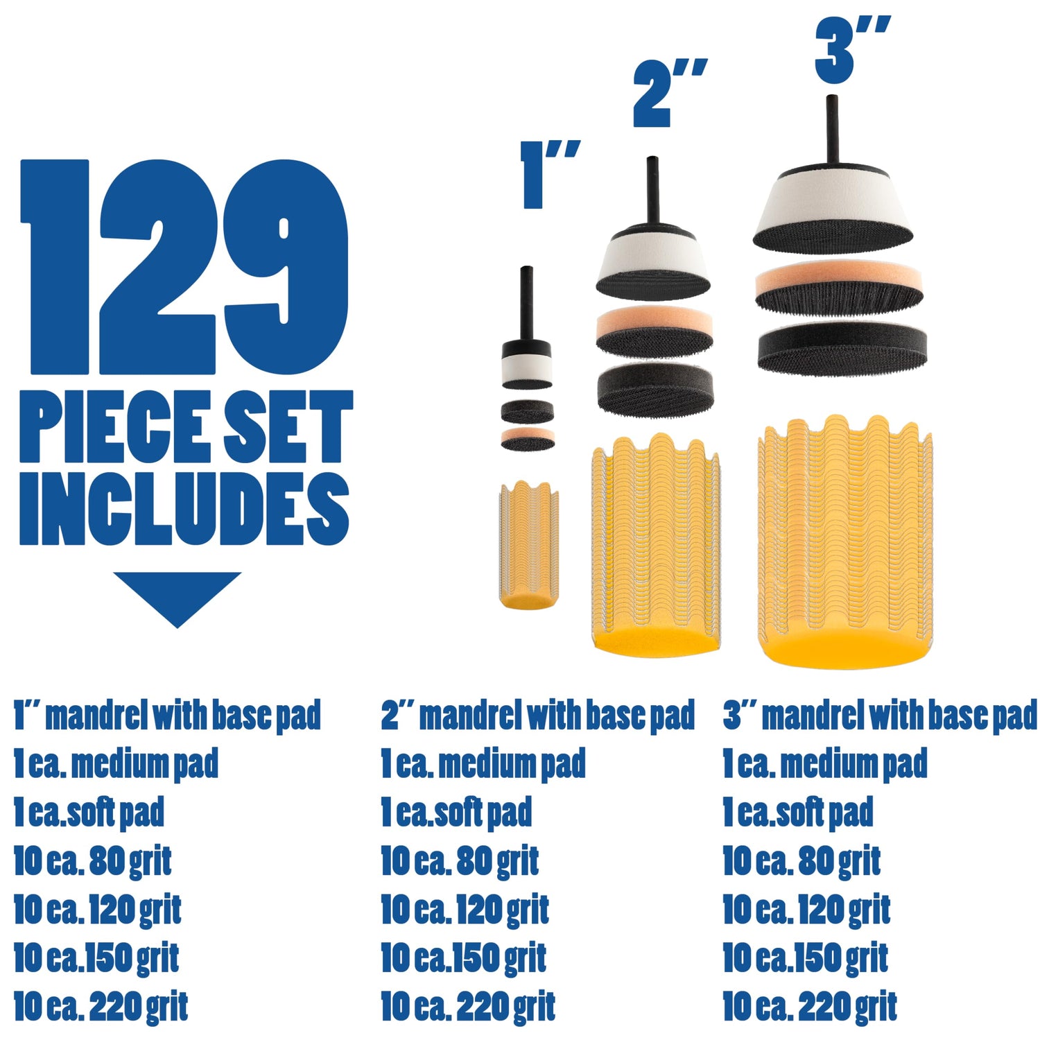 Fulton Woodworking Tools Bowl Flex Edge Sanding Disc Curved & Flat Surface Mandrel Kit (129 Piece)