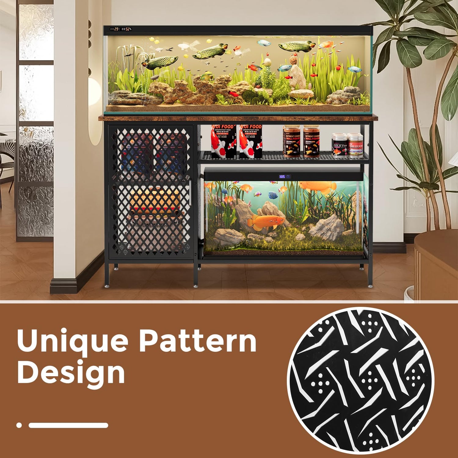 - [Convenient Storage Functionality]This 55-75gallon fish tank stand easily keeps everything .The two-layer storage compartment cabinet is convenient for storing daily necessities such as fish removal of compartments can accommodate filter cartridges and CO2 hoses. You can adjust the height of the compartment according to your needs.The storage cabinet keeps your fish tank area clean and tidy and allows you to access the items you need easily