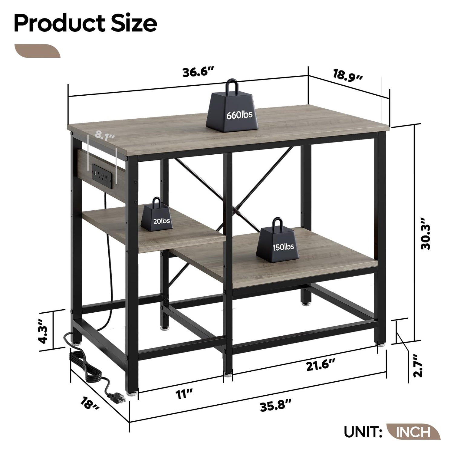 - Heavy-Duty & Stable Construction: Built with sturdy metal and P2-grade engineered wood, supported by 6-legs and X-shape reinforcement, ensuring stability and a weight capacity of up to 660 pounds