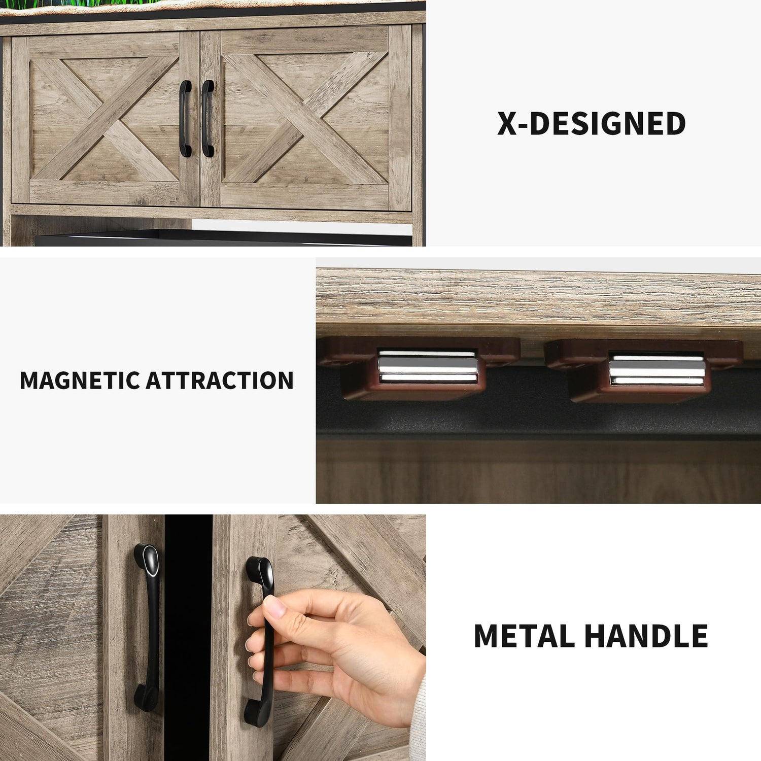 - Fashionable appearance: This sleek, modern grey aquarium stand complements various home decors. The cabinet door's crossing decor introduces a distinctive and fashionable vibe to your home