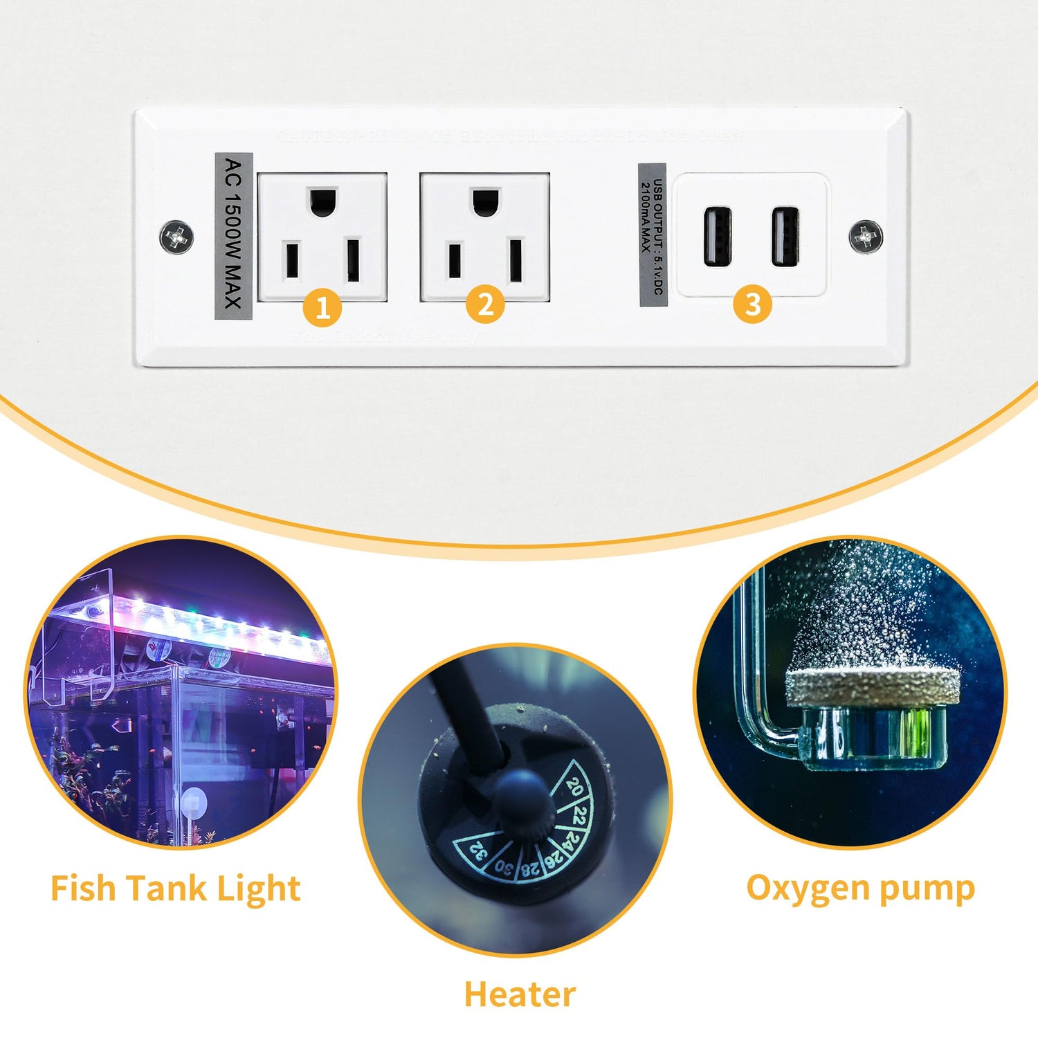 - Convenient and practical: The integrated power outlets can be easily installed, without the need for additional tools. Easy to connect electronic devices such as lights, heaters, and oxygen pumps, simplifying your fish tank management
