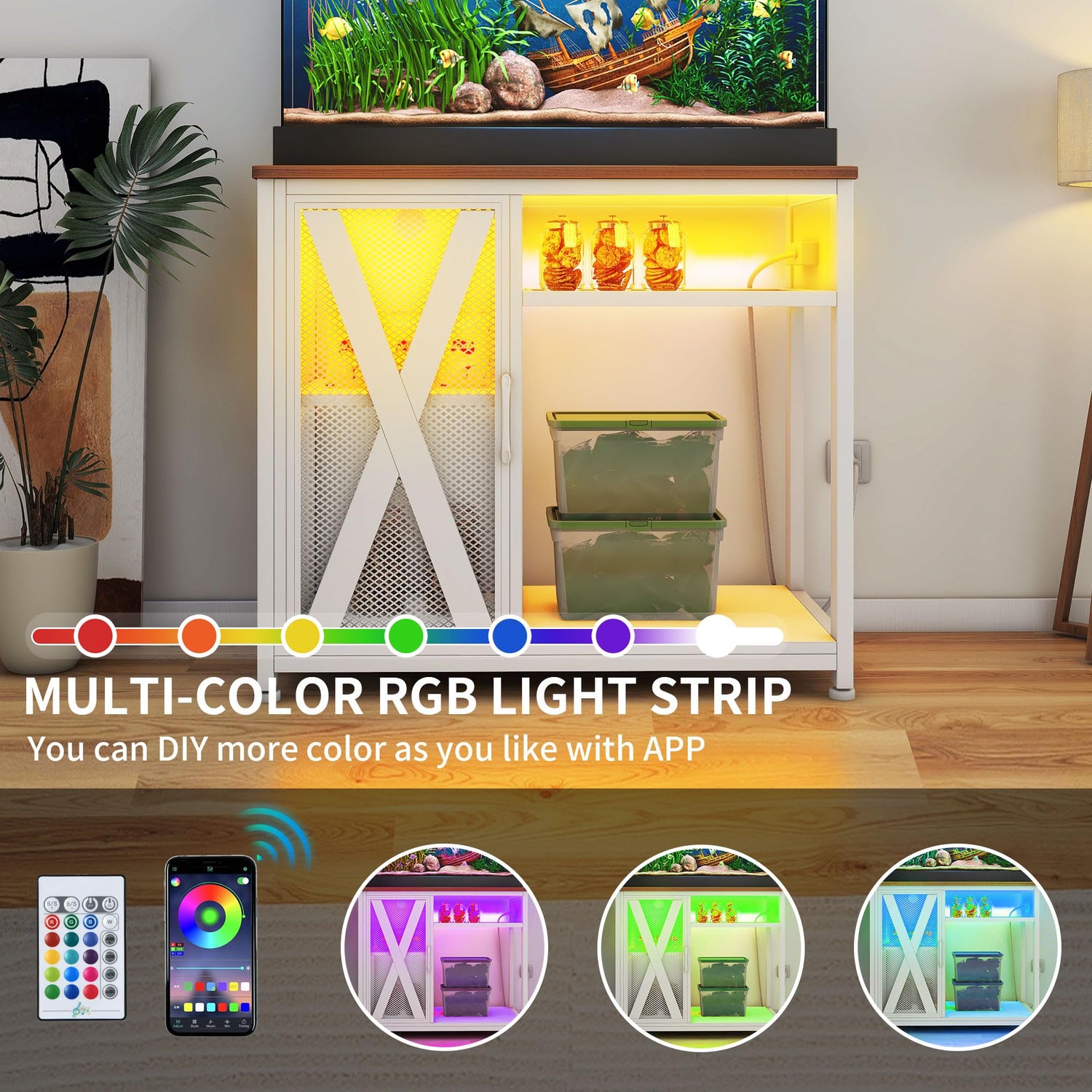 - Gorgeous LED Lights: Our aquarium stand is equipped with LED lights featuring RGB capabilities, both on the cabinet and above the smaller fish tank stand. This allows you to adjust the lighting of your aquarium according to your mood, creating any desired illumination