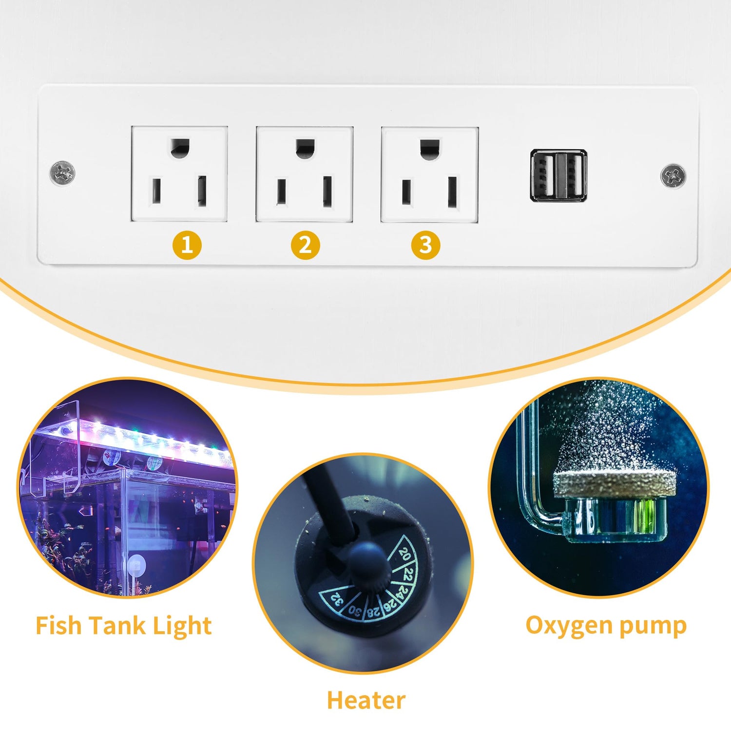 - Convenient and practical: The integrated power outlets can be easily installed, without the need for additional tools. Easy to connect electronic devices such as lights, heaters, and oxygen pumps, simplifying your fish tank management