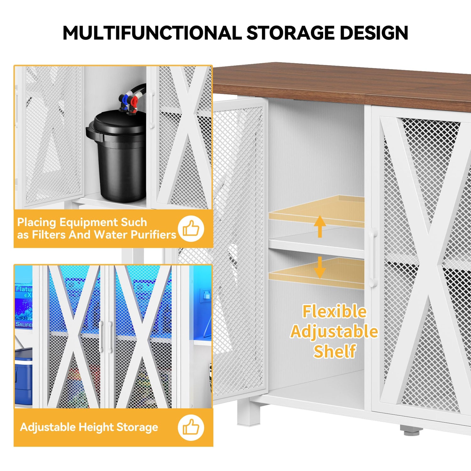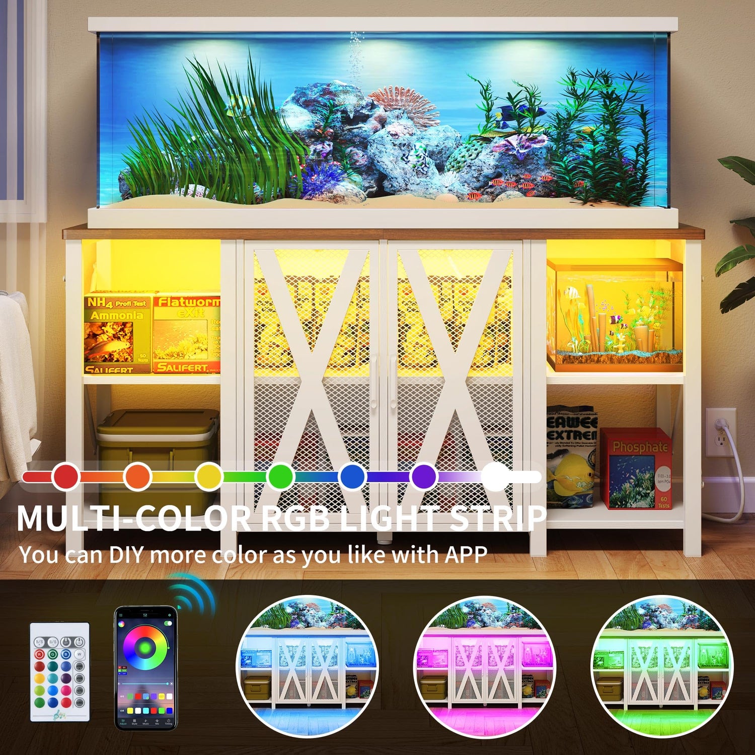- Gorgeous LED Lights: Our aquarium stand is equipped with LED lights featuring RGB capabilities, both on the cabinet and above the smaller fish tank stand. This allows you to adjust the lighting of your aquarium according to your mood, creating any desired illumination