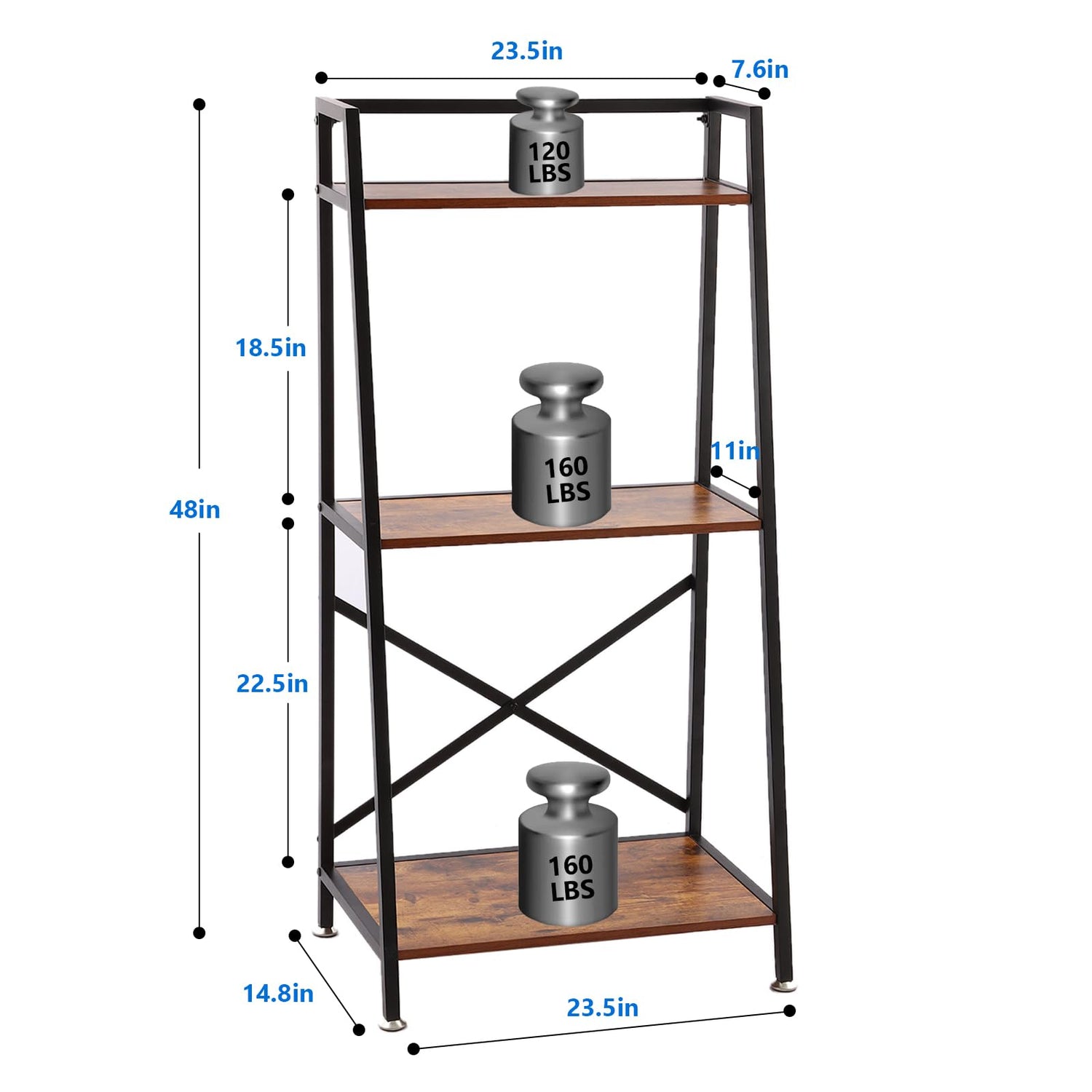 - Save more Spaces: This fish tank stand has 3 Layers, whole aquatium stand measurements: 23 1/2"L X 16"W X 48"H, the total capacity is up to 420LBS, the bottom bigger layer: 22"L X 14"W, the capacity is up to 150LBS; the middle layer: 22"L X 10"W, the capacity is up to 150LBS too; the top layer: 22"L X 6 3/4"W, the capacity is up to 120LBS. So it can hold two fish tanks, put it in any corners, save more spaces, great display stand.