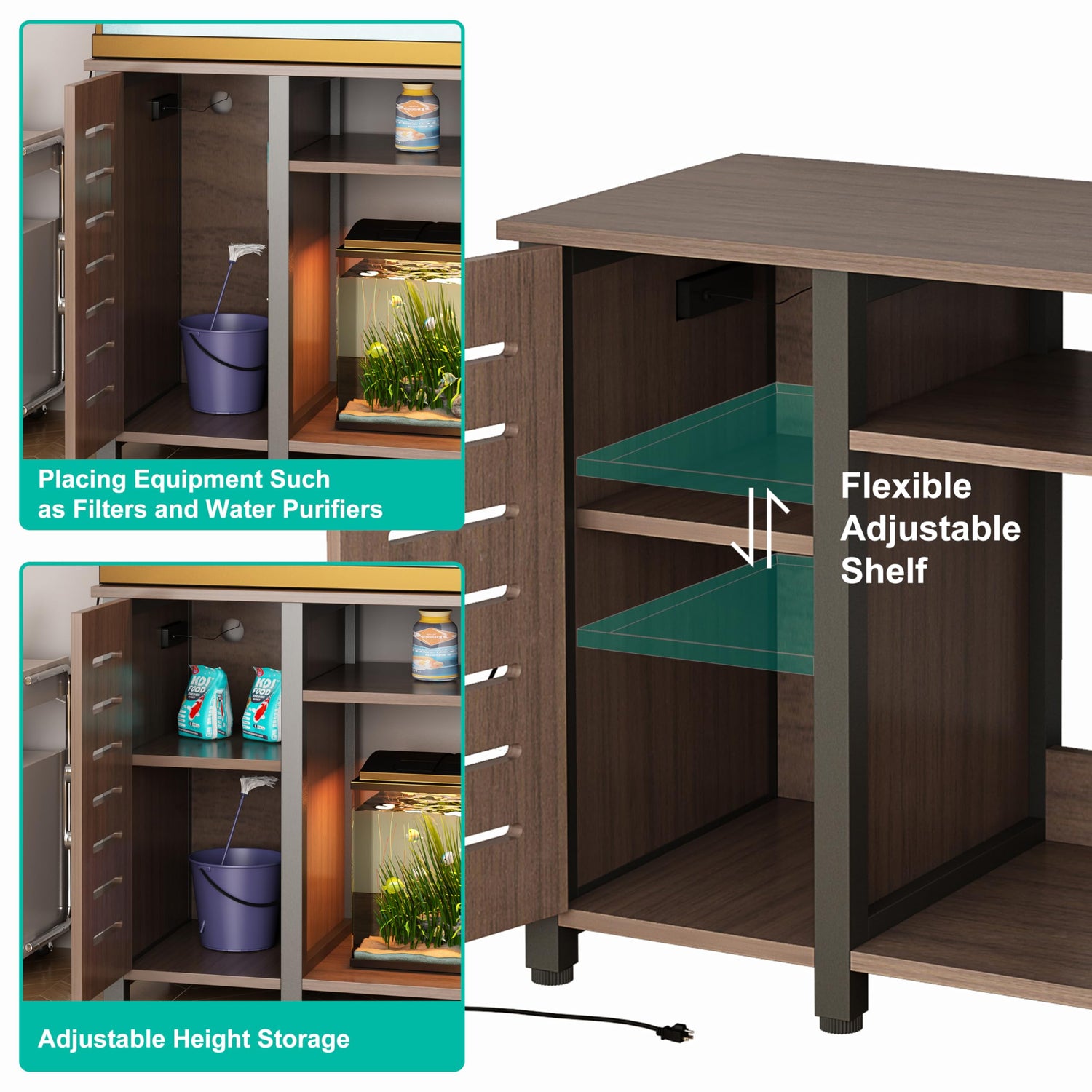 Details: 55-75 Gallon Fish Tank Stand, Heavy Duty Aquarium Stand with Power Outlet and Cabinet for Fish Tank Accessories Storage(Fish Tank Not Included.)