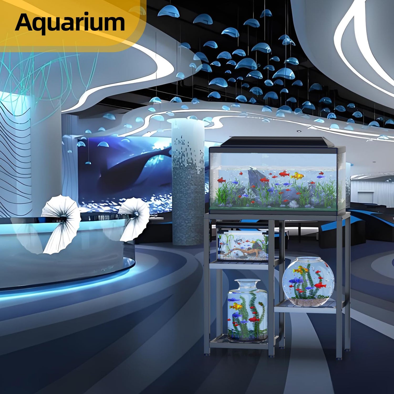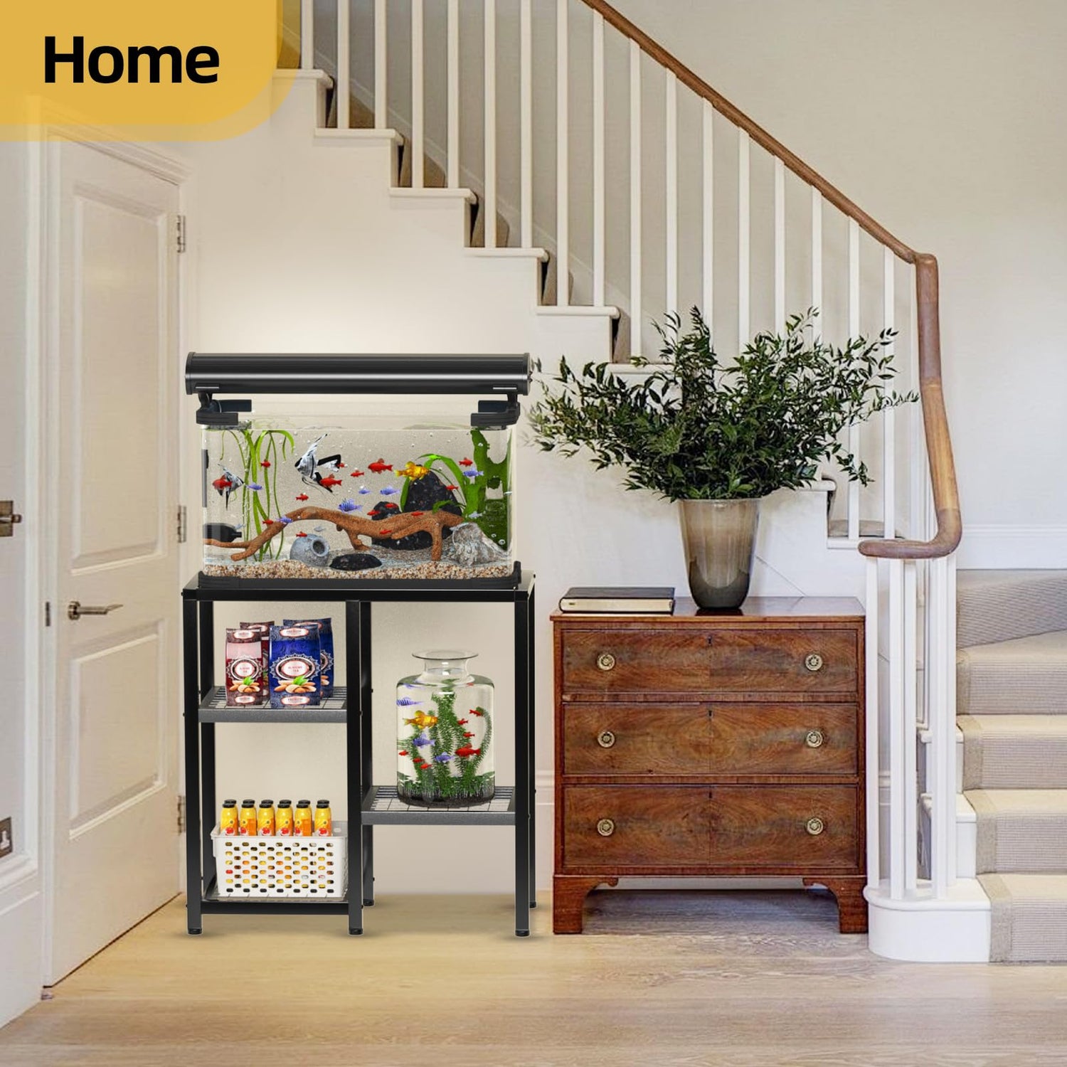- 🐟【Widely Used】: This fish tank stand is designed in a modern style, simple, stylish and beautiful, complements a variety of home décor styles, ideal for home, office or aquarium. If you have any questions about the fish tank stand, please feel free to contact us, we will provide you with solutions in time.