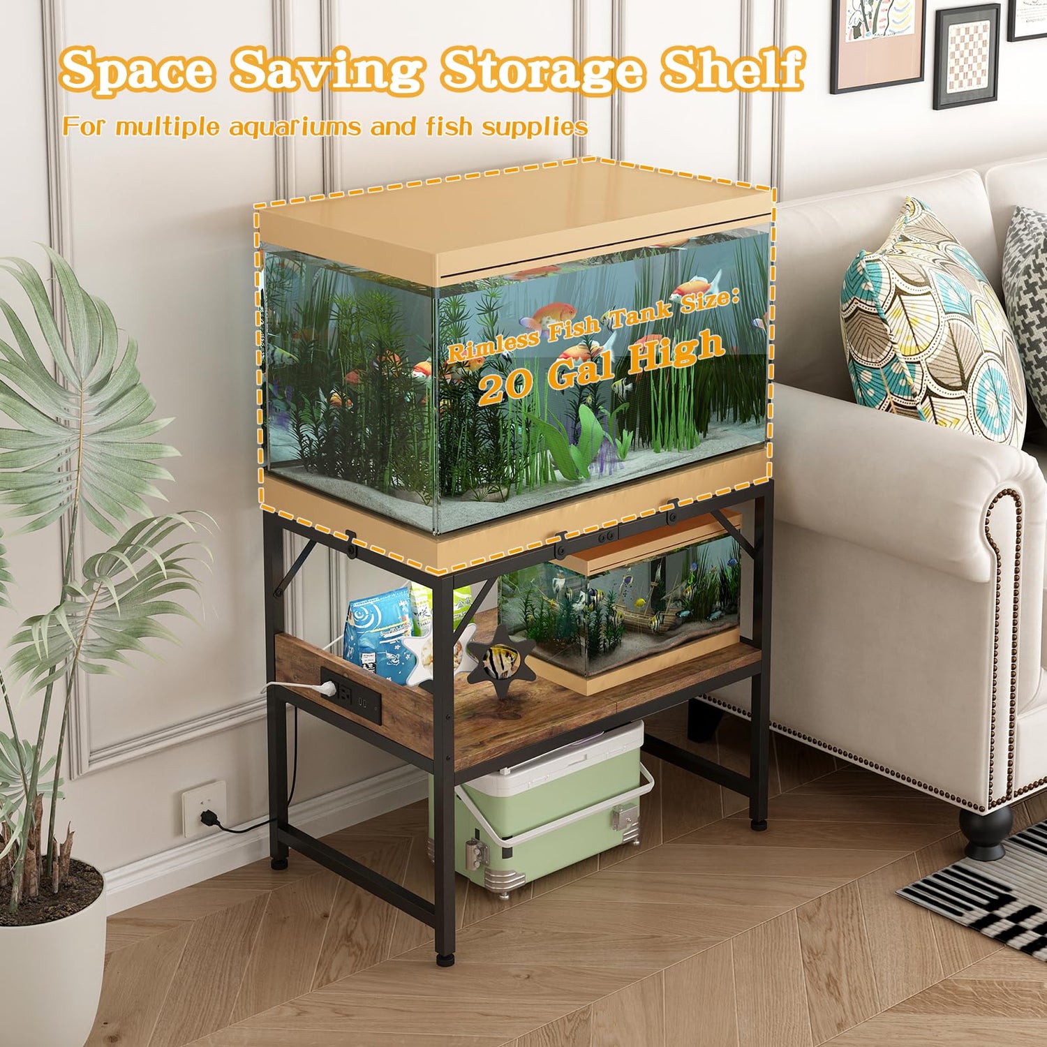 • 【Dual Storage】Featuring a two-tier shelving system, the top shelf can hold up to a 20-gallon aquarium, while the open middle shelf is perfect for small aquariums or storing various accessories. Maximize space and storage with this fish rack