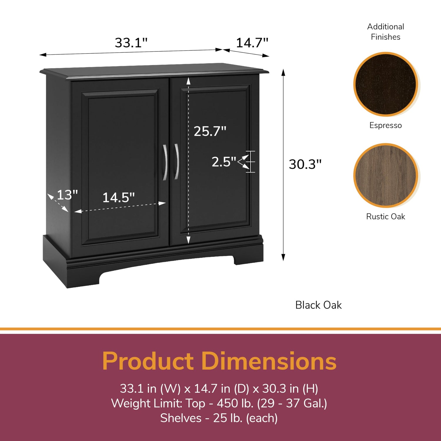 Details: Introducing the Flipper Harbor 29 - 37 Gallon Aquarium Stand by Ollie & Hutch, the perfect way to proudly display your fish tank in style. Made of laminated particleboard and MDF, this sleek black stand features brushed nickel door handles for a modern touch. With 4 shelves, 2 of which are adjustable, and 2 doors, you can keep all your fish food, nets, and water treatments neatly stored away. The stand fits snugly against the wall, providing a 3-sided view of your aquarium. Complete your room with other items from the Flipper collection (sold separately). This stand is built to hold up to 37 gallon aquariums or up to 450 lbs, with each shelf holding up to 25 lbs. Assembly is required, and it is recommended to have two adults for assembly. Dimensions of the stand are 30.333”H x 33.0625”W x 14.6875”D, making it the perfect size for your aquarium. Elevate your fish tank with the Flipper Harbor Aquarium Stand today!