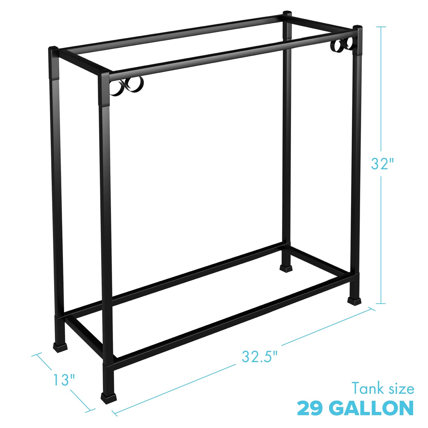 - 2-TIER: Both top and bottom shelves can hold one 29 gallon tank or a 20 gallon long tank. Assembled dimensions: 32.5" W x 32 "H x 13" D