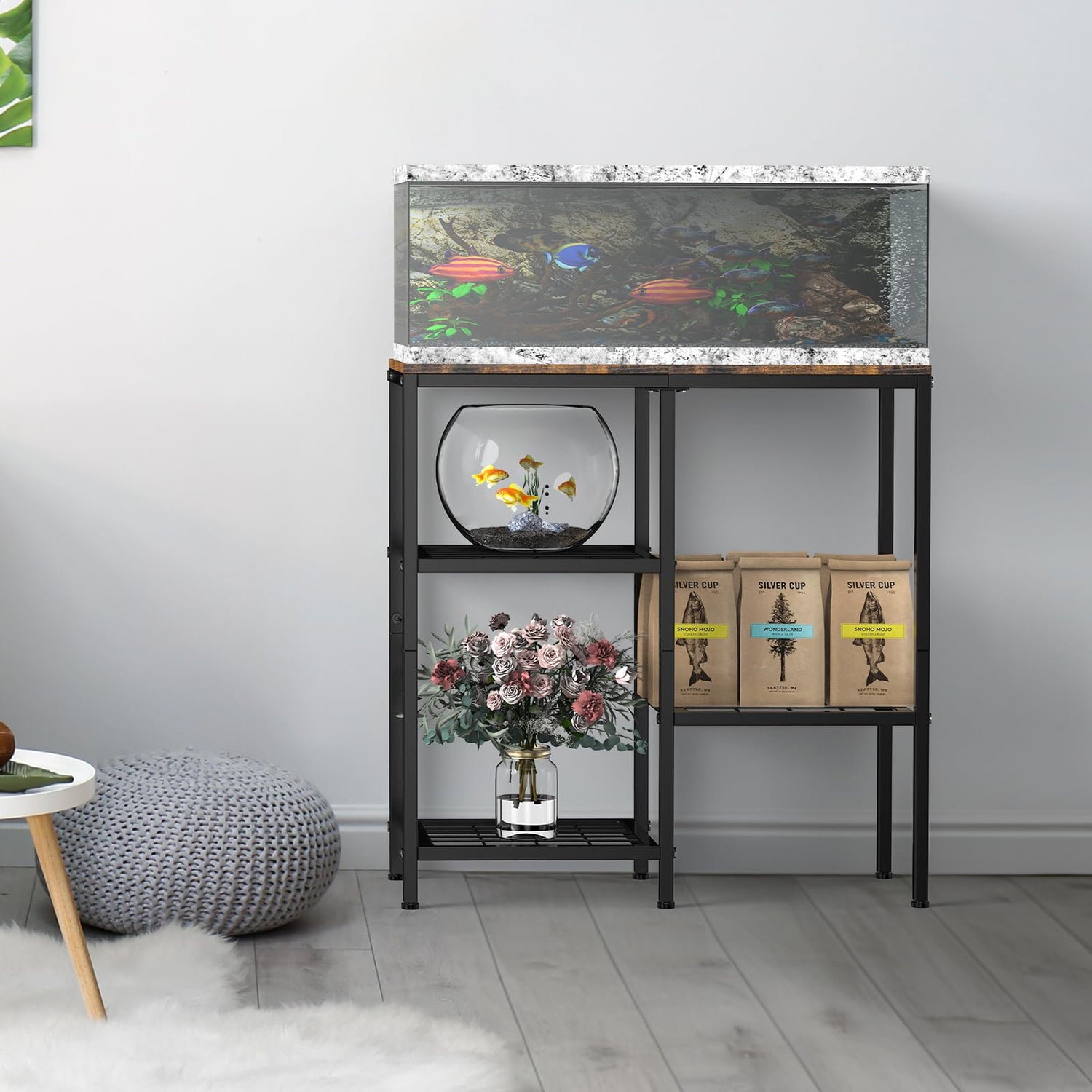 YBING 20 Gallon Fish Tank Stand Aquarium Stand with Board Reptile Tank Stand with 3-Tier Small Mesh Shelves 29" L x12 W x 30" H Brown