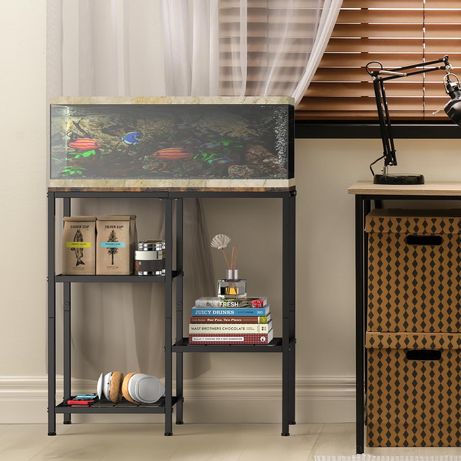 - Load-bearing capacity: The tank stand measures 29.1" L x 12.2" W x 30.1" H and can hold up to 330 pounds, suitable for most 20-gallon fish tanks or glass aquariums. Adjustable non-slip rubber support feet make the fish tank safe and reliable