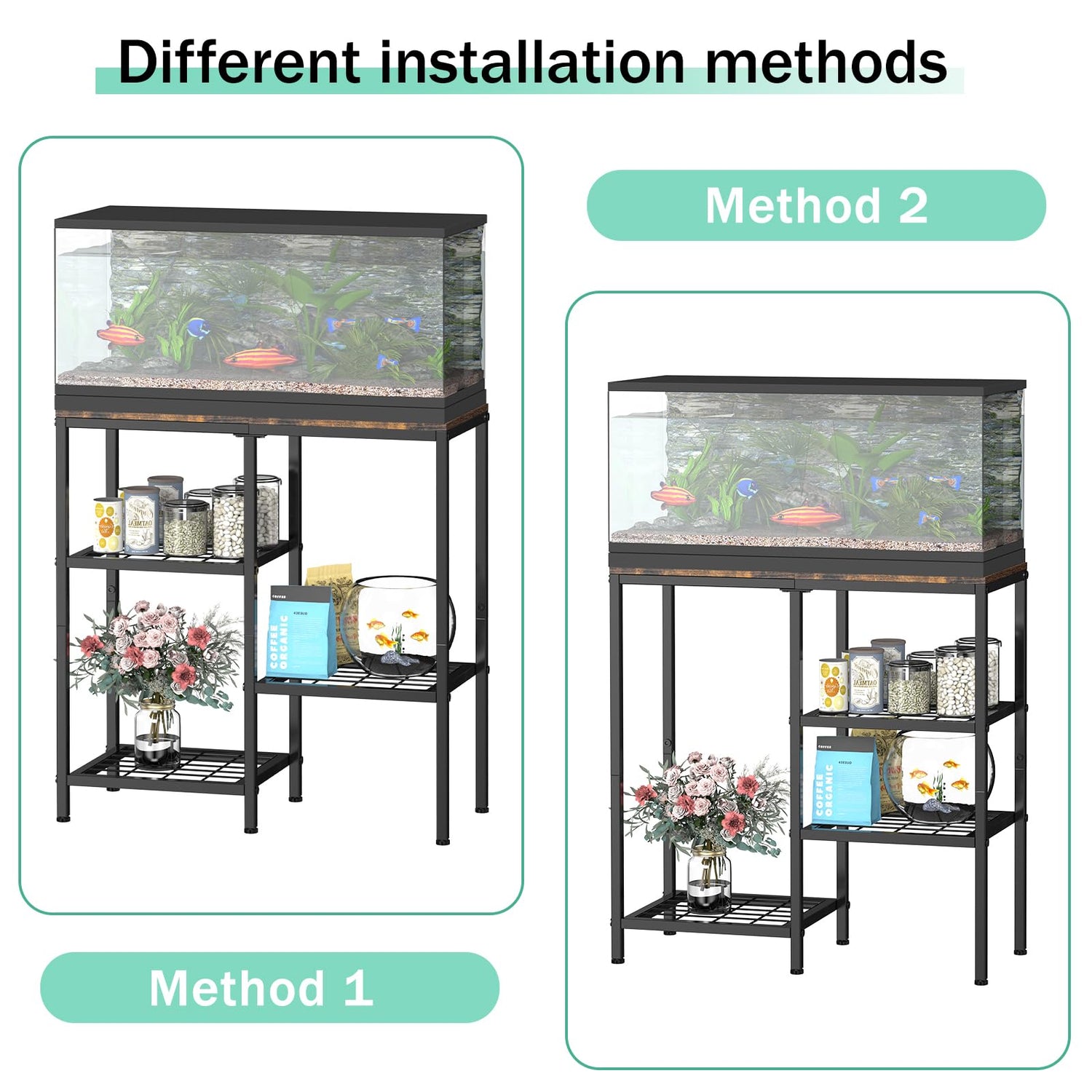 - Easy to install: The fish tank rack with a wooden board on the top is easy to install and includes clearly marked installation instructions and tool accessories. It can be assembled in 10-20 minutes without the use of additional tools