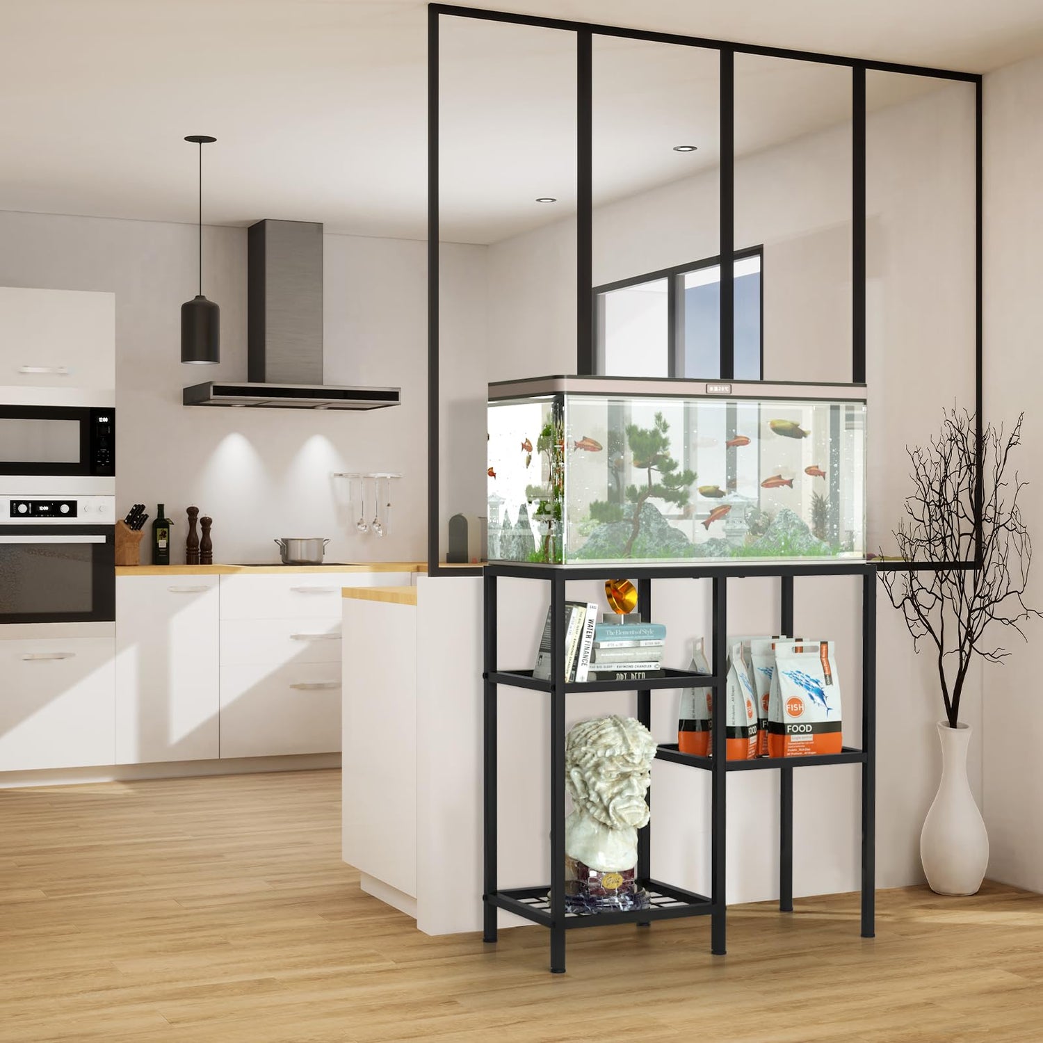 - Multi-functional design: In addition to placing the fish tank, the aquarium stand has 3 small mesh shelves, which can place some feed or daily supplies to provide additional storage space, and can also be used as decoration, placing green plants or books, integrating into the home style, adding color to life.