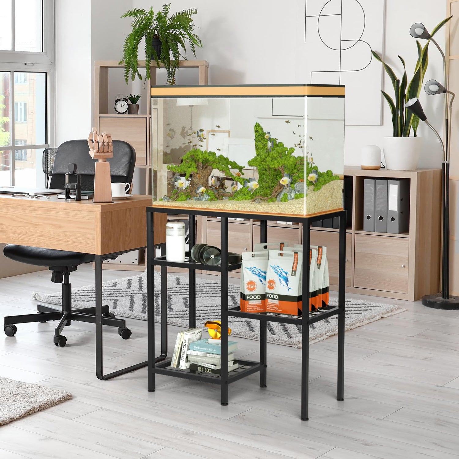 YBING Fish Tank Stand 20 Gallon Aquarium Stand Aquarium Turtle Tank Reptile Tank Stand with 3-Tier Small Metal Shelf