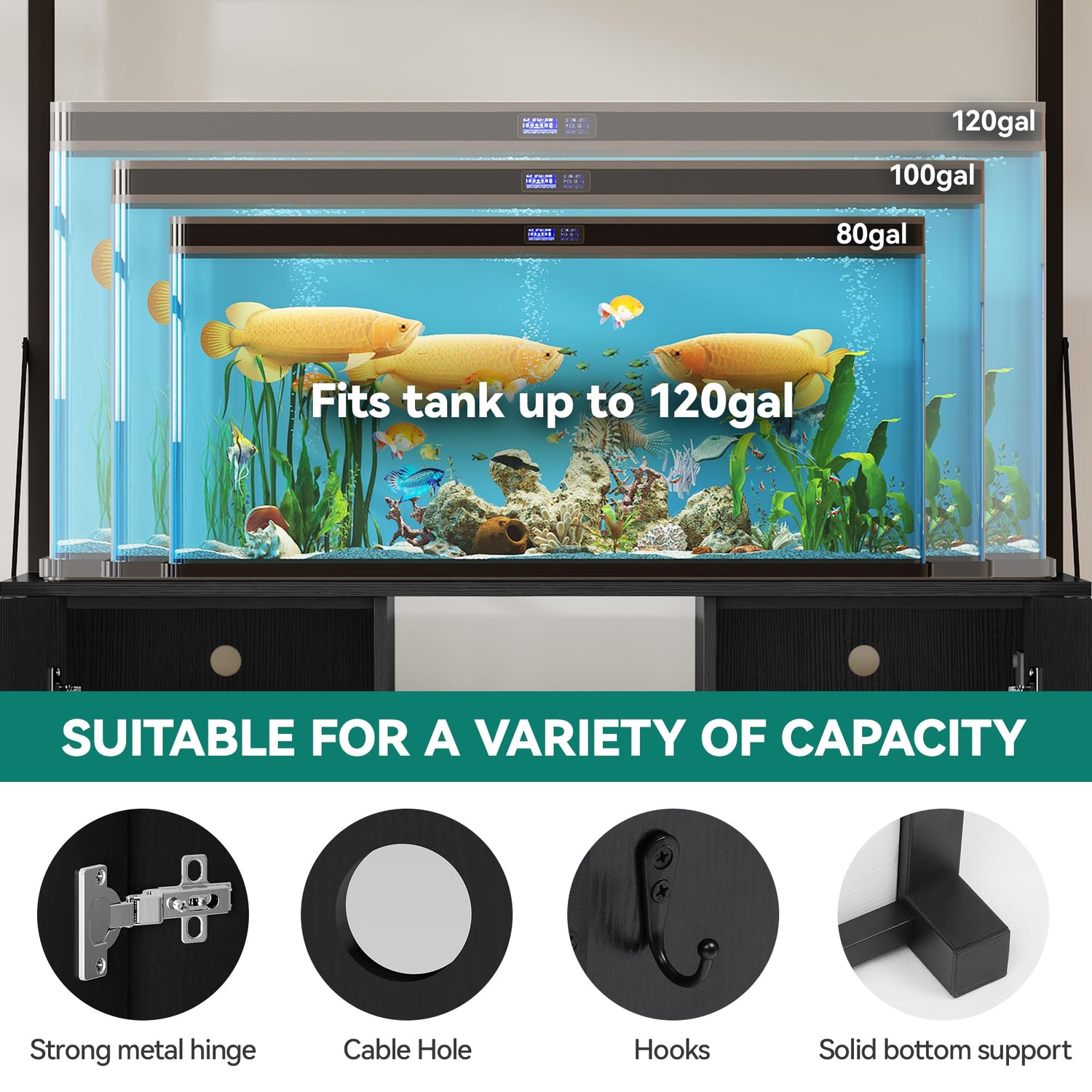- Spacious & Versatile Aquarium Stand: Accommodating a 40-120 gallon aquarium, the 48.8''L x 24''W top surface supports most standard tanks with a 1,100 lbs weight capacity. The bottom shelf provides additional space for 10-gallon aquariums, making the most of your available space.