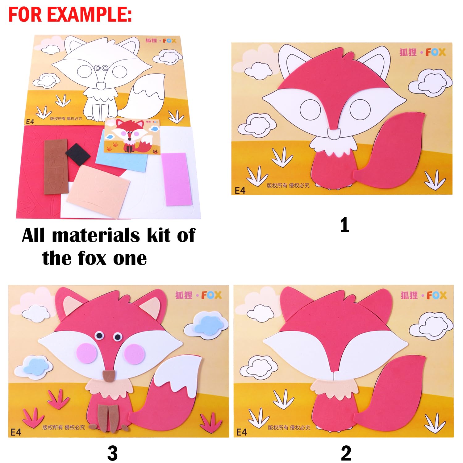 12 x Different Foam Sticker(1 x Fox, 1 x monkey, 1 x tiger, 1 x sheep, 1 x cow, 1 x unicorn, 1 x squirrel, 1 x elephant, 1 x lion, 1 x rabbit, 1 x kangaroo, 1 x giraffe )