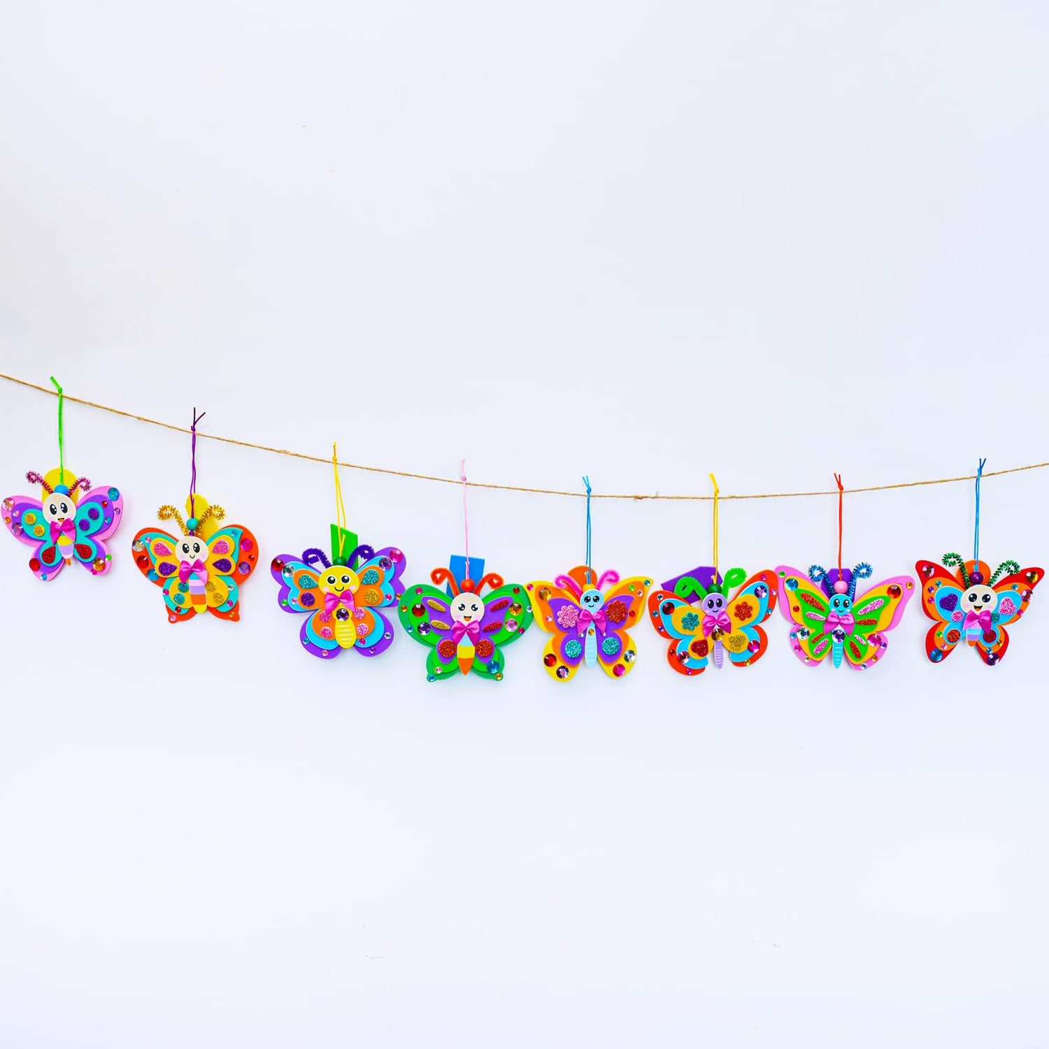 - Bulk DIY Rainbow Butterfly Ornaments Craft Kit: This pack provides materials for creating 24 easy-to-make butterfly ornaments, including 24 foam butterfly bases, 24 foam butterfly cutouts stickers in two sizes, 1 sheet of foam butterfly body stickers, 6 sheets of glitter butterfly decoration stickers, 24 plain and metallic chenille stems, 24 sheets of gem stickers, 24 pink bows, 24 cords, 24 wooden beads, 24 gift tags, 24 treat bags, 24 twist ties, 24 gift stickers, 30 adhesive dots, and 2 guide.