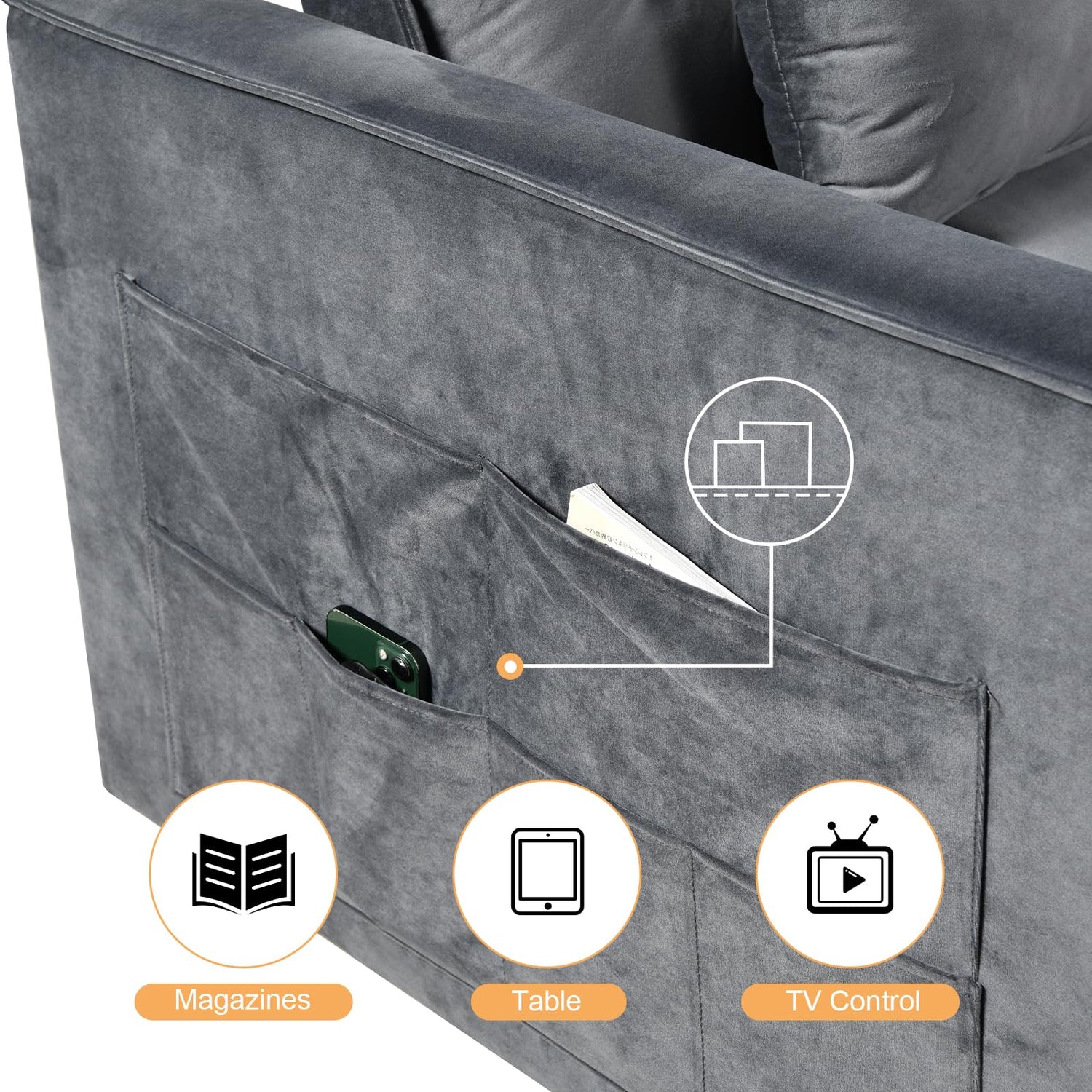 - Space-Saving & Storage Solution:This multifunctional pull out bed couch is perfect for maximizing space in compact environments. It allows for efficient use of limited space by combining seating and sleeping accommodations in one stylish unit. Furthermore, it features a handy removable side storage bag, perfect for keeping essentials like TV remotes, phones and books within arm’s reach.