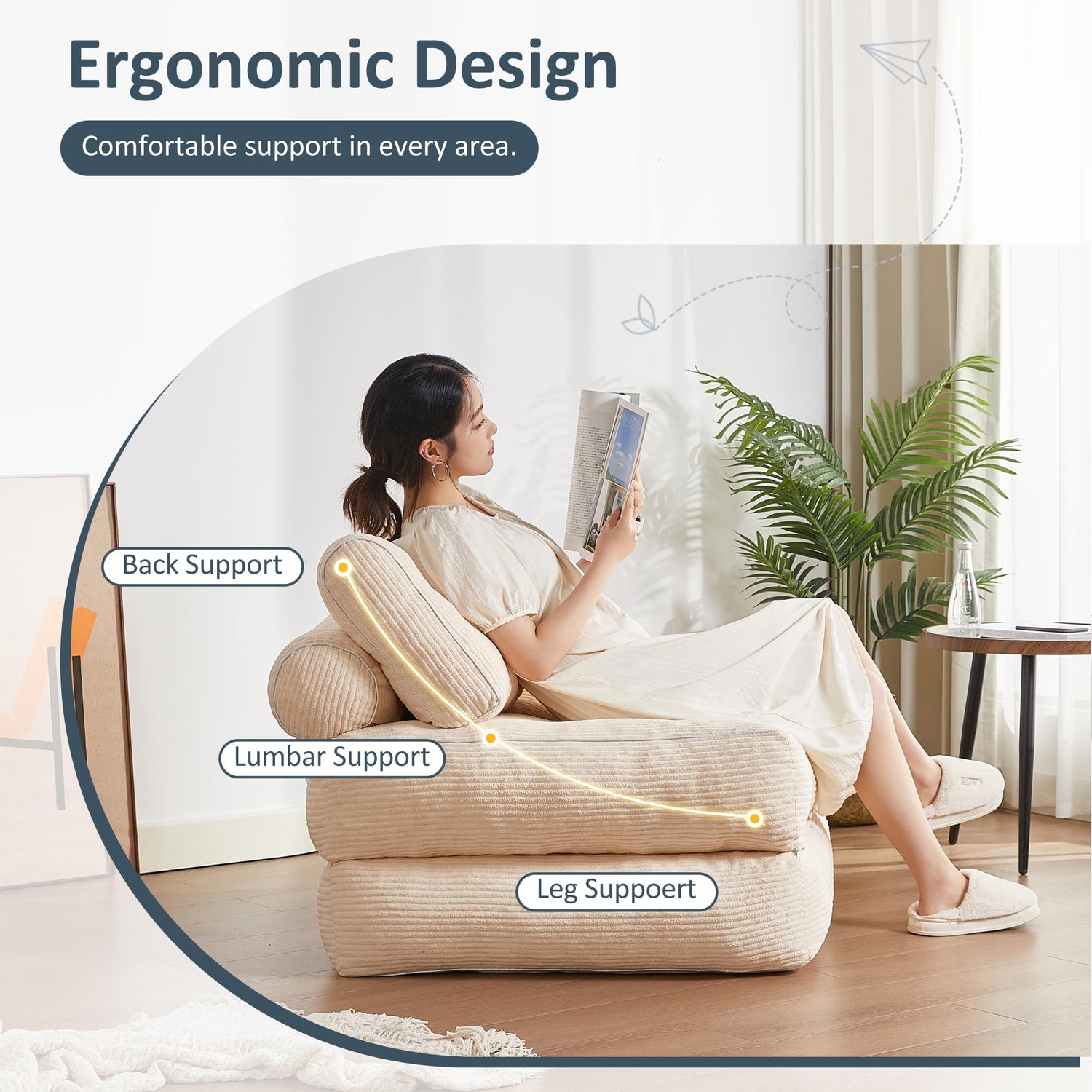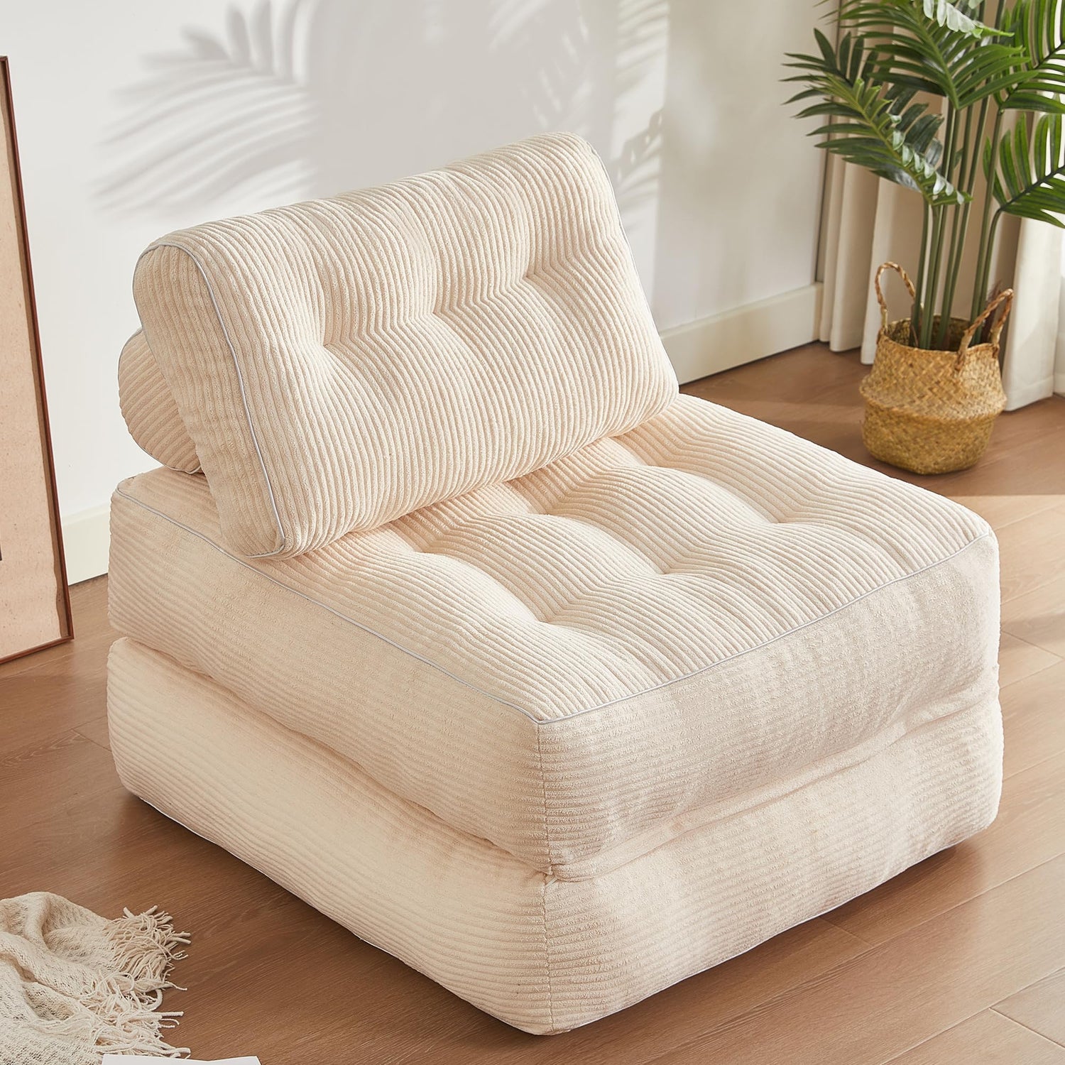 - Versatile Design: This folding couch offers exceptional flexibility, easily converting into a cushion, sofa, lounge chair, or bed to fit your needs. Whether you're hosting guests, reading, or enjoying movies, it delivers both comfort and convenience. Additionally, the couch can be split into two cushions using the middle zipper, providing adaptable configurations