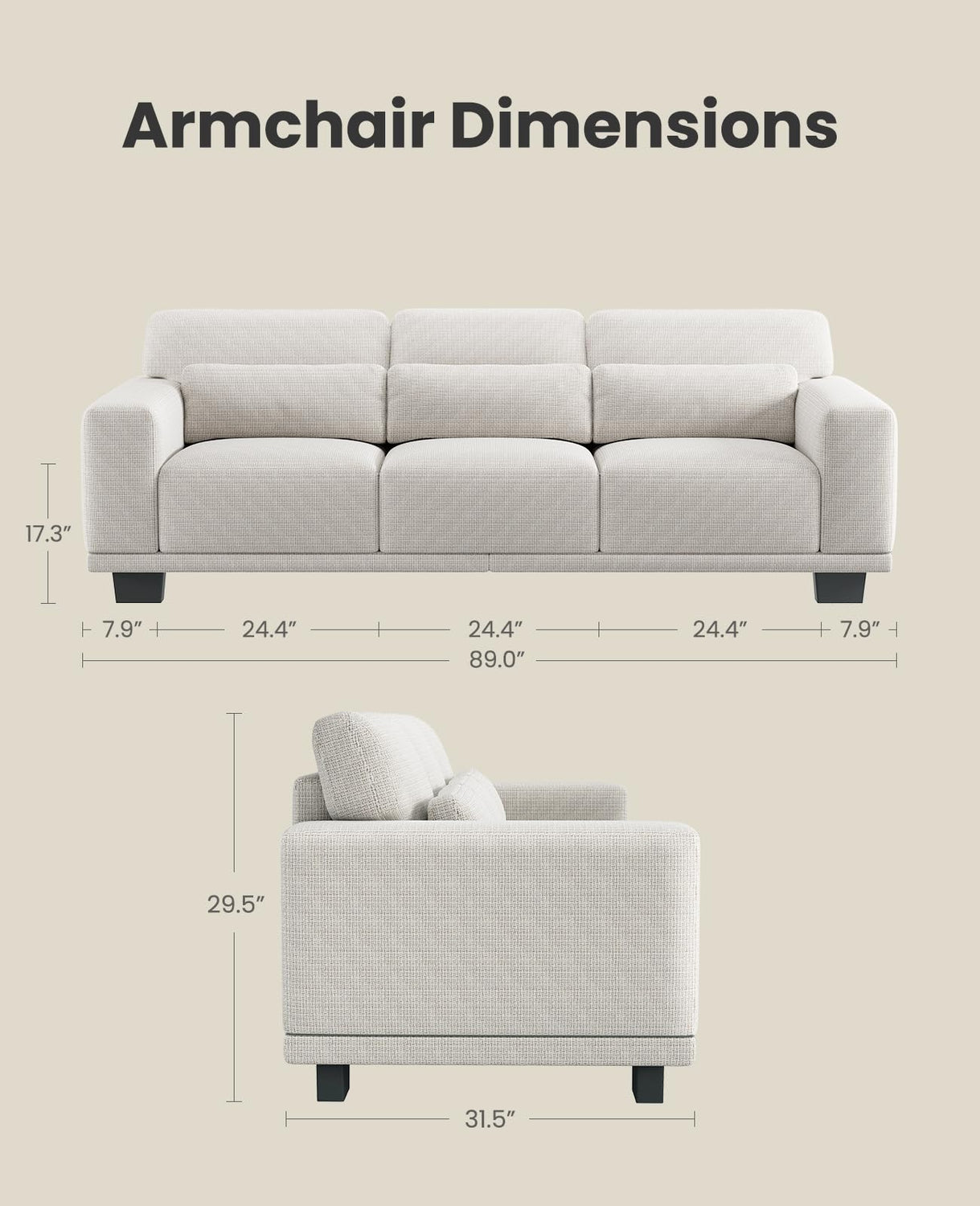 - 【Deep & Comfy Couch, Spacious】Indulge in the luxurious space of this 3 Seater Sofa with 89" wide seat and 31.5" depth. Our sofa boasts a spacious and versatile design, making it a perfect fit for any space, from living rooms to bedrooms, providing ample room for 3-4 individuals to unwind and relax
