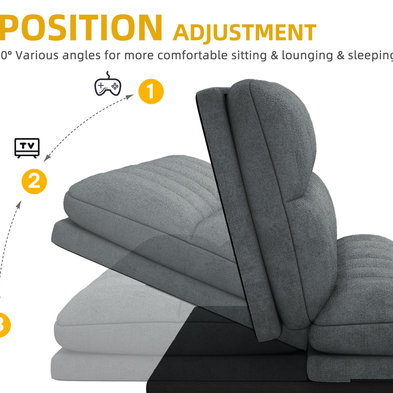 - Adjustable Backrest & Armrests: Easily adjust the backrest to 120°, 160°, or 180° and the armrests to 0°, 20°, 50°, or 75°, whether you want to sit up, lean back, or lie completely flat, our convertible sofa bed is ready to match your comfort