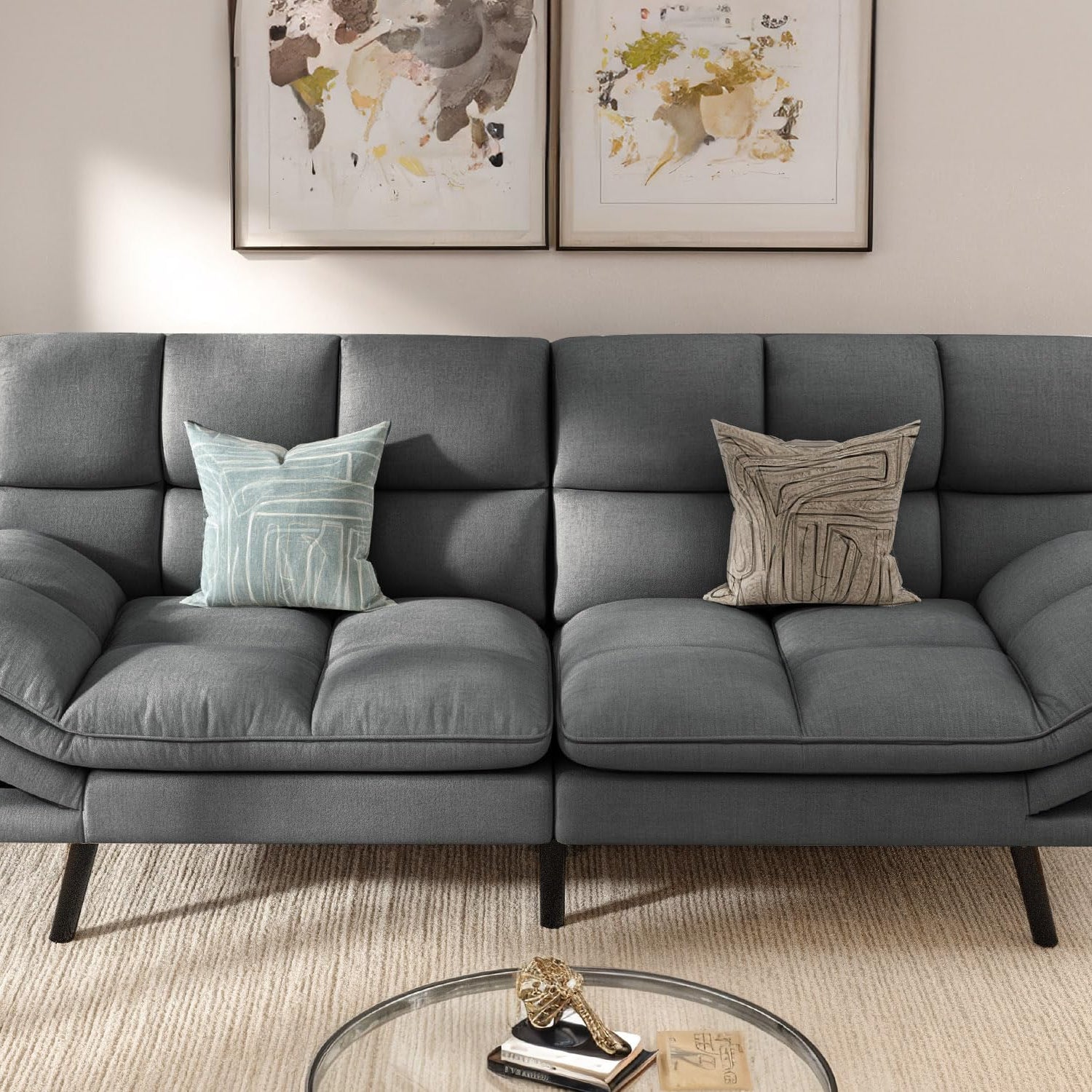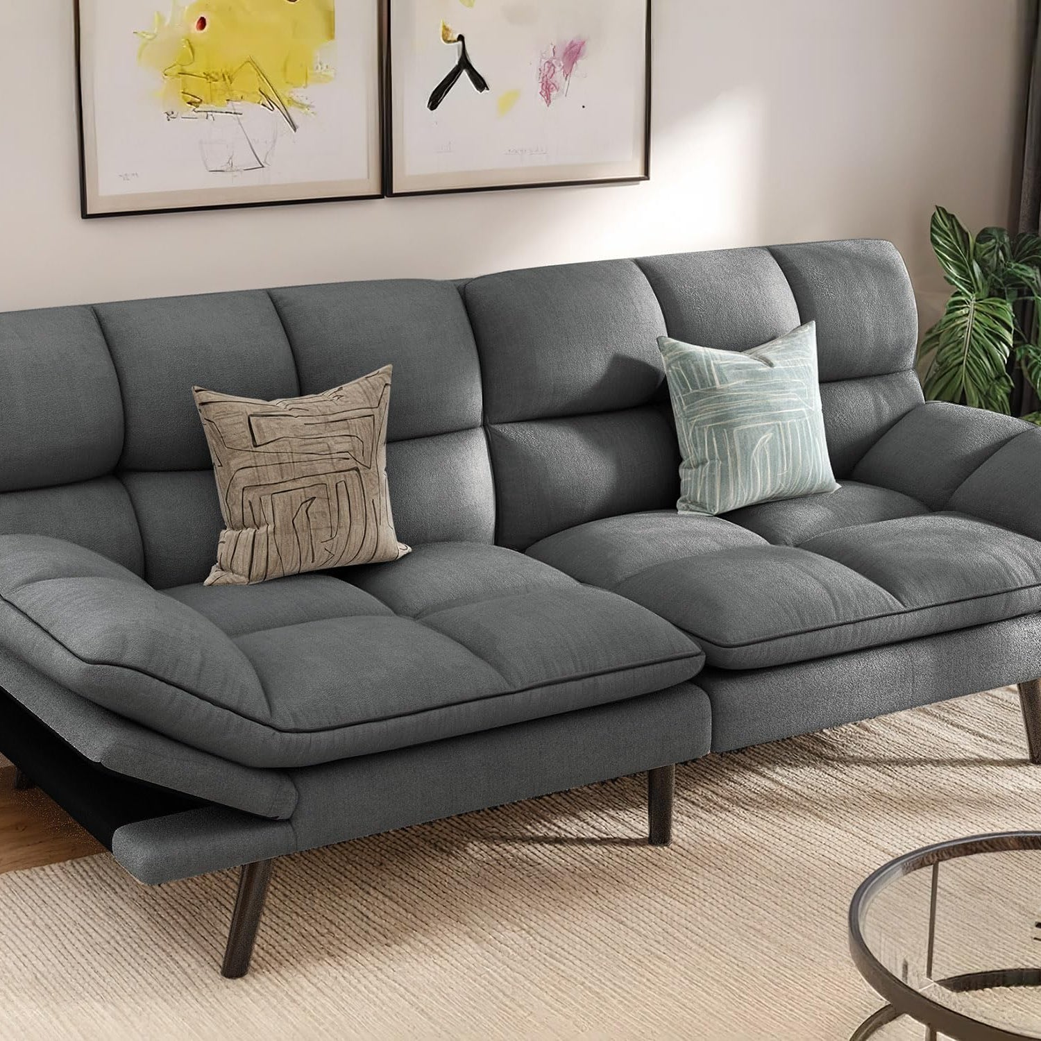 - Modern Minimalist with Easy Assembly: With sleek lines, dark grey tones, and plush padding, this futon adds a modern touch to any room. Simple to assemble with included instructions, it’s a stylish and practical upgrade for your home