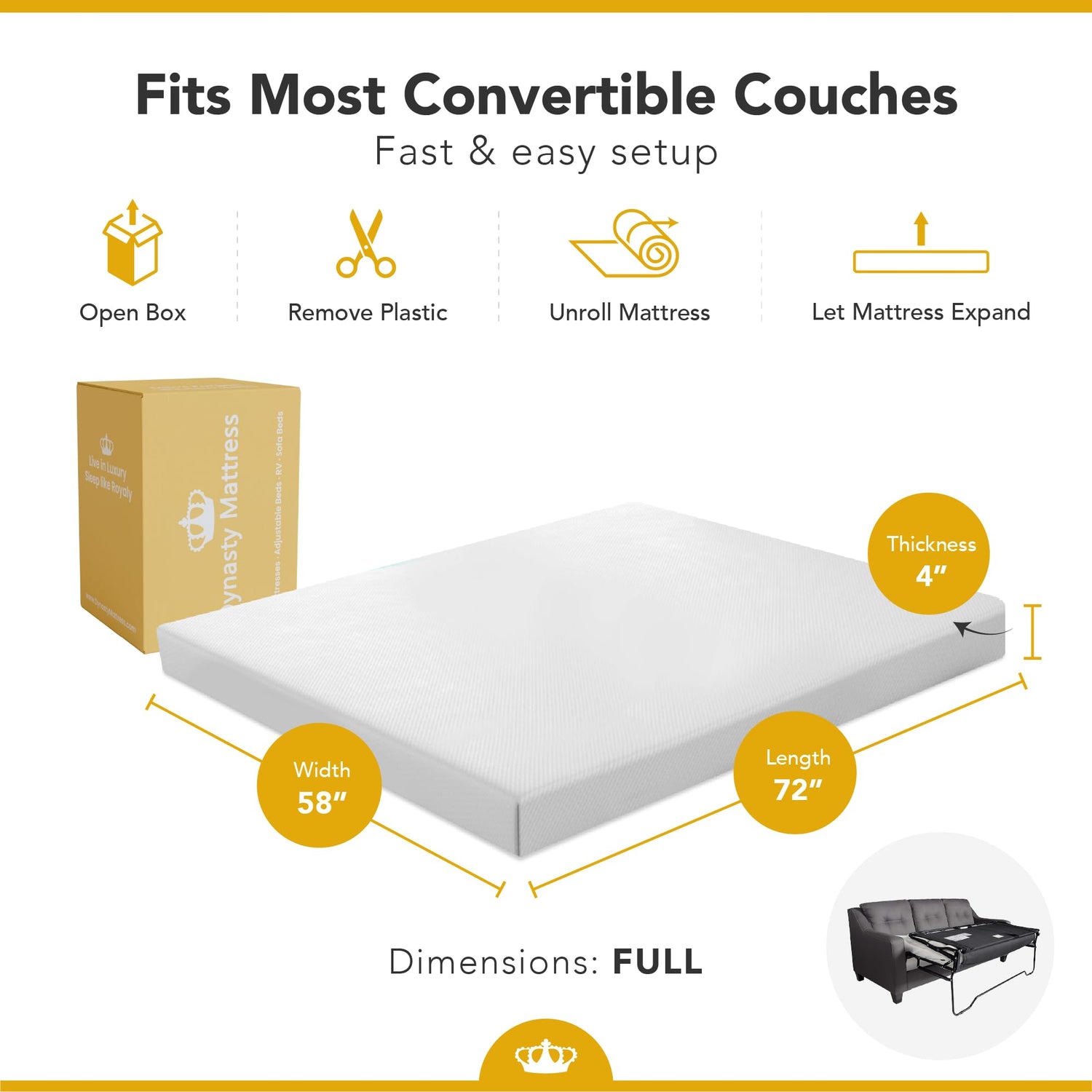 DynastyMattress 4-inch Cool Gel Memory Foam Mattress Sleeper for Convertible Folding Sofa & Couch Beds Full Size Sofa Not Included (USA Made)