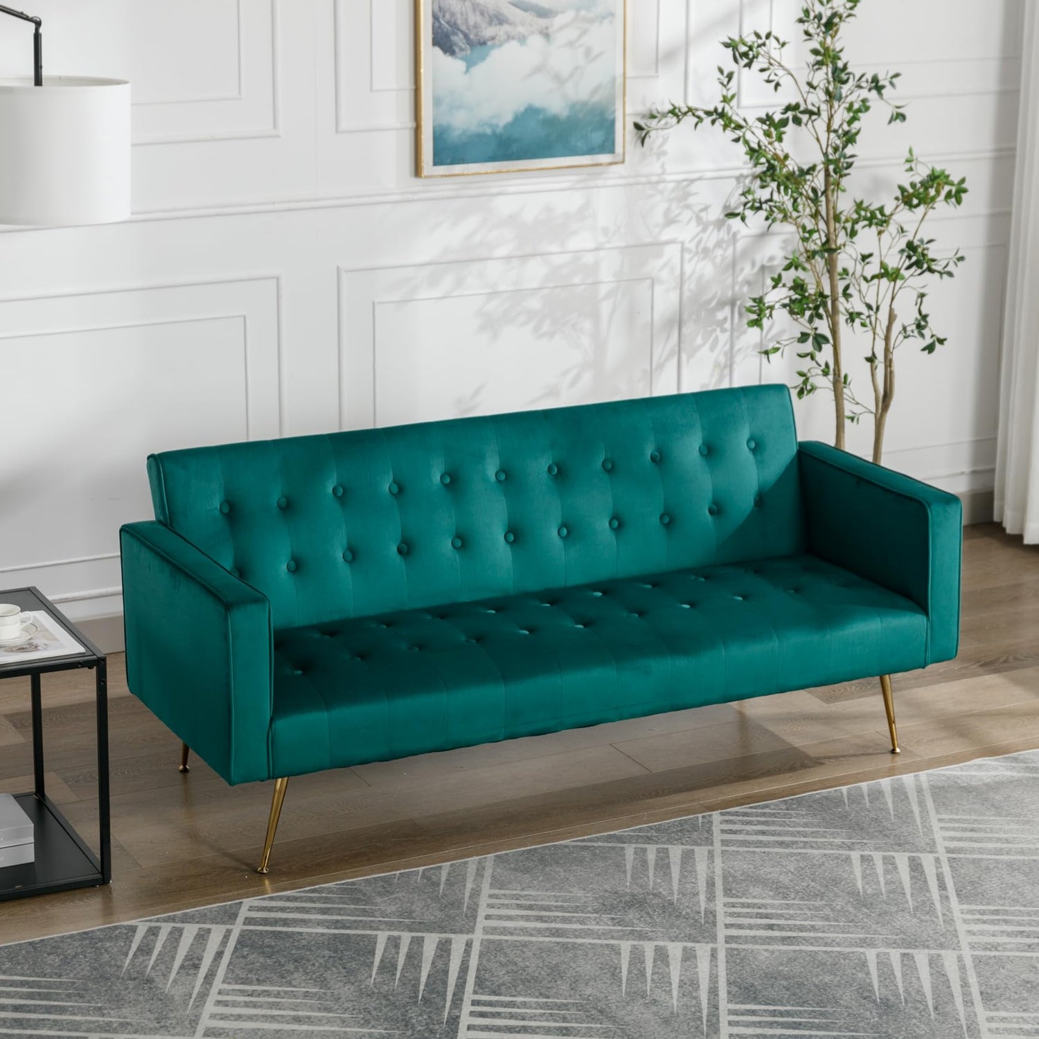 - Modern style love seat with solid Structure: The frame of sofas for living room is strong wood.Futon sofa bed Set with gold sturdy metal legs,is Durable can Weight Capacity: 660 LB.Beautiful chic tufted cushion design elevate charm for your office or home.Classic line design and modern aesthetic style can fit western sofas,retro classy sleeper couch,and more especial elegant couches for cute rooms,dorm college,minimalist person.