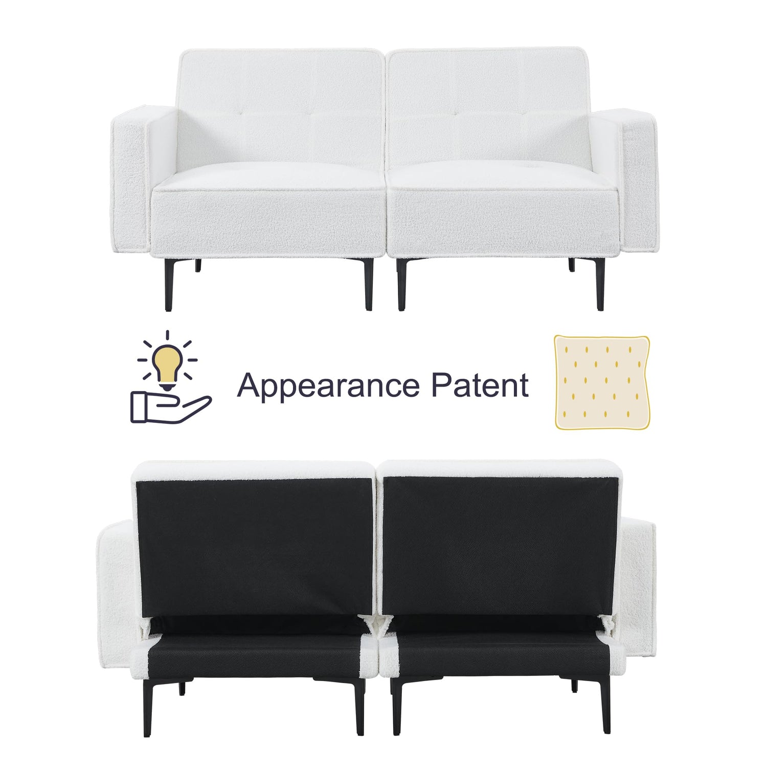 Furnify Small Loveseat for Living Room, 67" Sleeper Sofa Couch, Modern Futon with Adjustable Backrest, Comfy Two Seater Sofa for Bedroom Apartment Office, Teddy Fleece Fabric - White