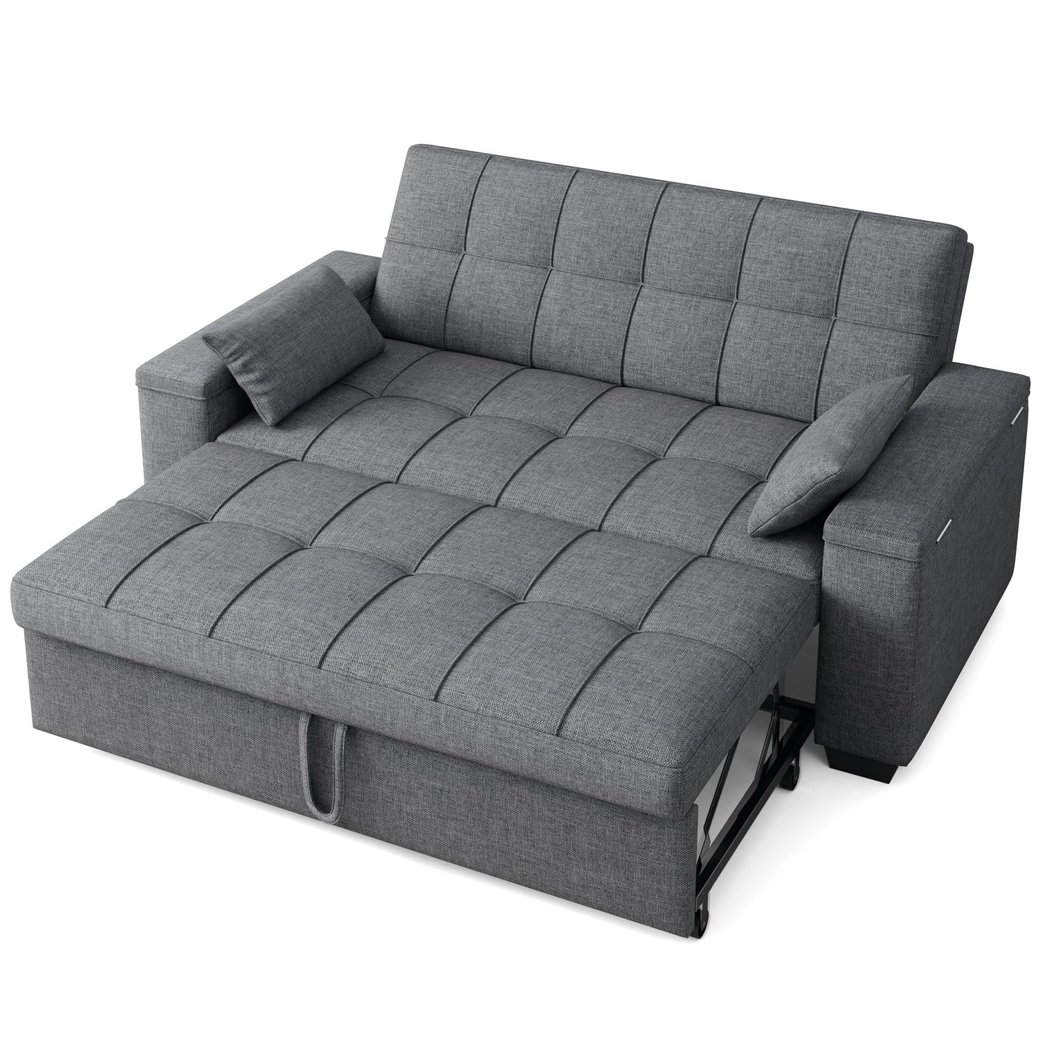 - UPGRADED: Linen Fabric Convertible Sofa Bed with Hidden Storage Armrest, Now with Hidden Storage Pockets Added, 30% More Storage Capacity; Now with Reinforced Connecting Steel Bar, 30% More Ultimate Stability
