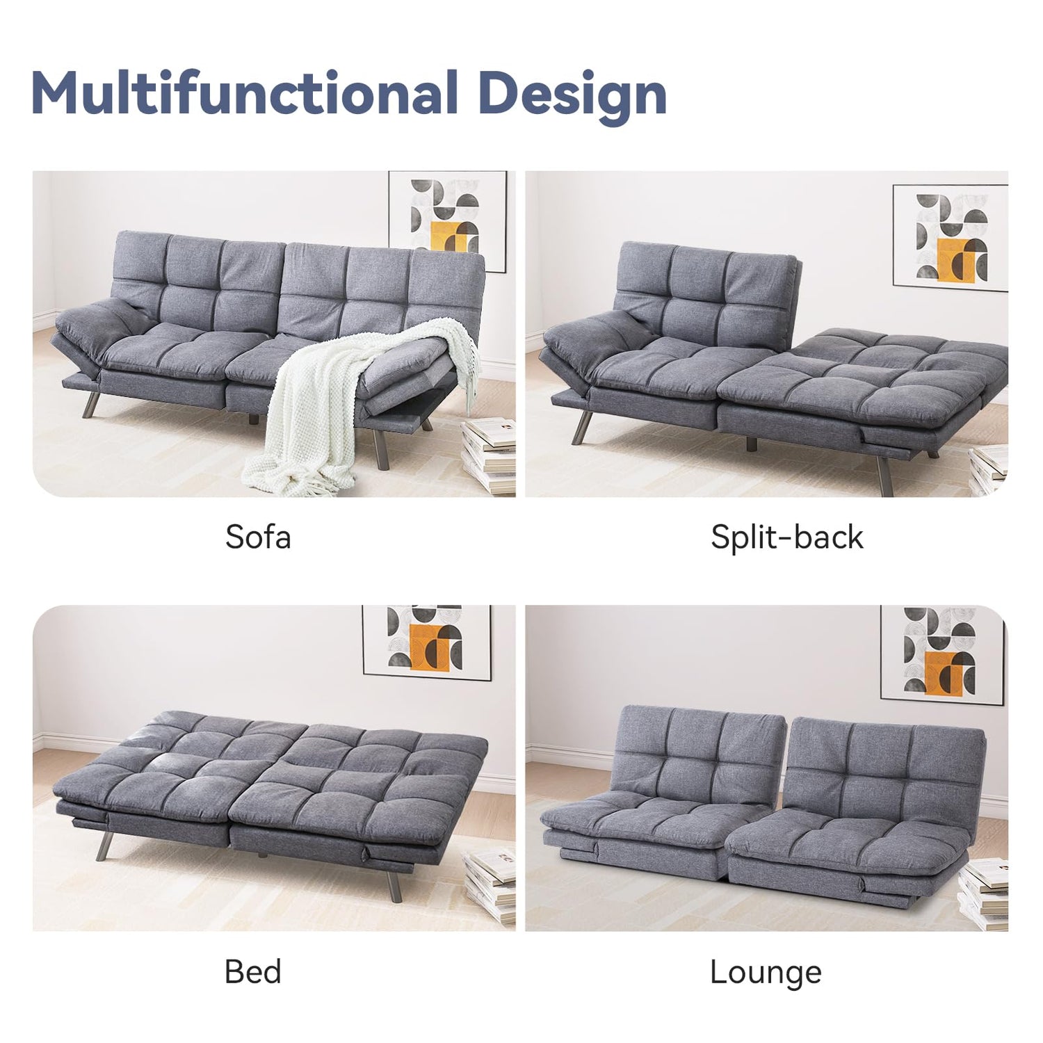 Hcore Convertible Splitback Futon Sofa Bed for Living Room, Office, Apartment - Memory Foam Sleeper Loveseat, Modern Small Couch in Grey