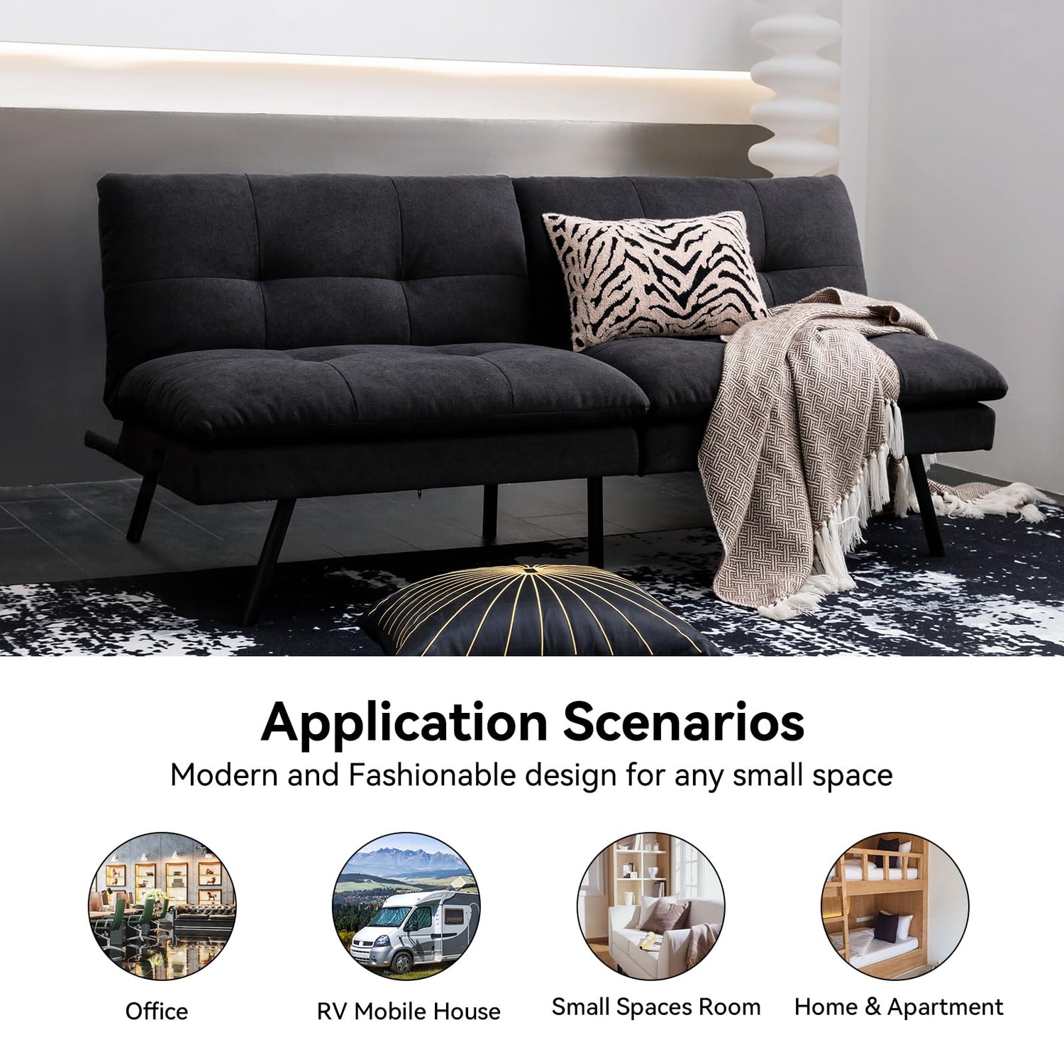 - 【Perfect For Small Space】:Our futon sofa is suitable for 2 or 3 adults at the same time. The design of the sofa is a classic modern simple style. This multifunctional sofa bed can be placed in different room types, living room, bedroom, office, dormitory, RV and other small spaces.