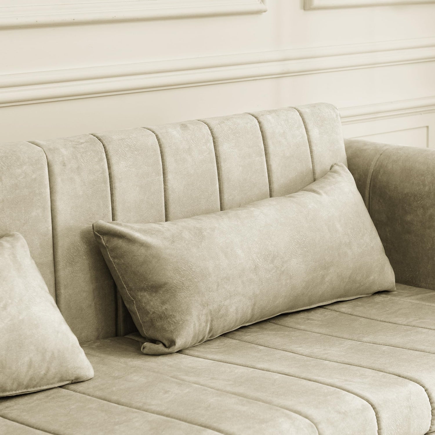 KIVENJAJA 82.3” Sleeper Sofa Bed Couch, Convertible 3-Seater Sofas with King Size Pull Out Sofabed, 3 in 1 Pullout Couches w/ 2 Drawers & Pillows for Living Room, Velvet, Beige