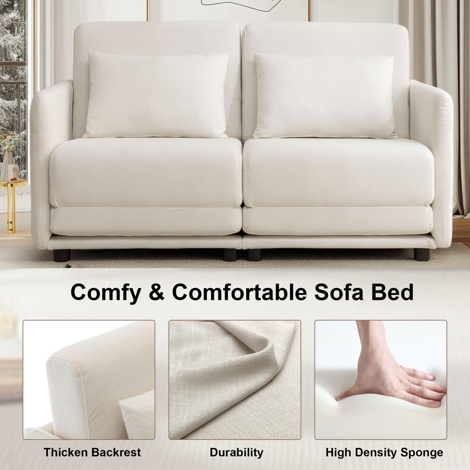 - 【Durable Comfort】Crafted with a robust steel frame, Korser small futon loveseat ensures long-lasting support and stability. The natural linen fabric is known for its softness, moisture-wicking properties, and natural texture, making it an ideal choice for those seeking sustainable material that provides a breathable, eco-friendly touch, offering both comfort and durability. Additionally, the removable cover allows for easy cleaning, preserving the beauty of your loveseat floor bed for years.