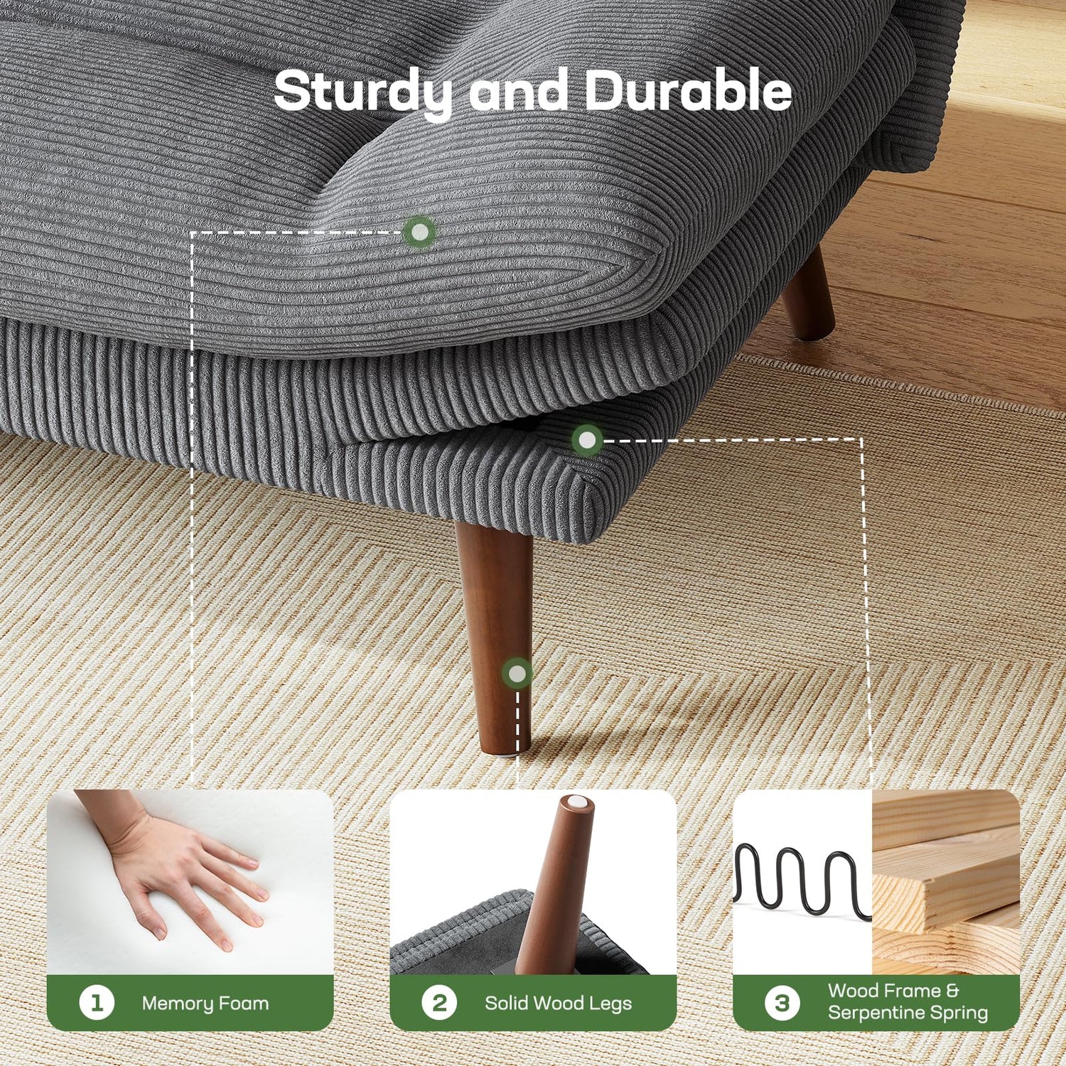- Soft Corduroy Fabric and Cozy Cushions: The futon bed cushions are filled with high-density foam to provide resilient support that lasts. Wrapped in vintage-style corduroy fabric, the futon couch bed offers a silky-smooth touch with exceptional softness that looks great in any room.The corduroy fabric is easy to clean and maintain, ensuring your futon looks great for years to come.