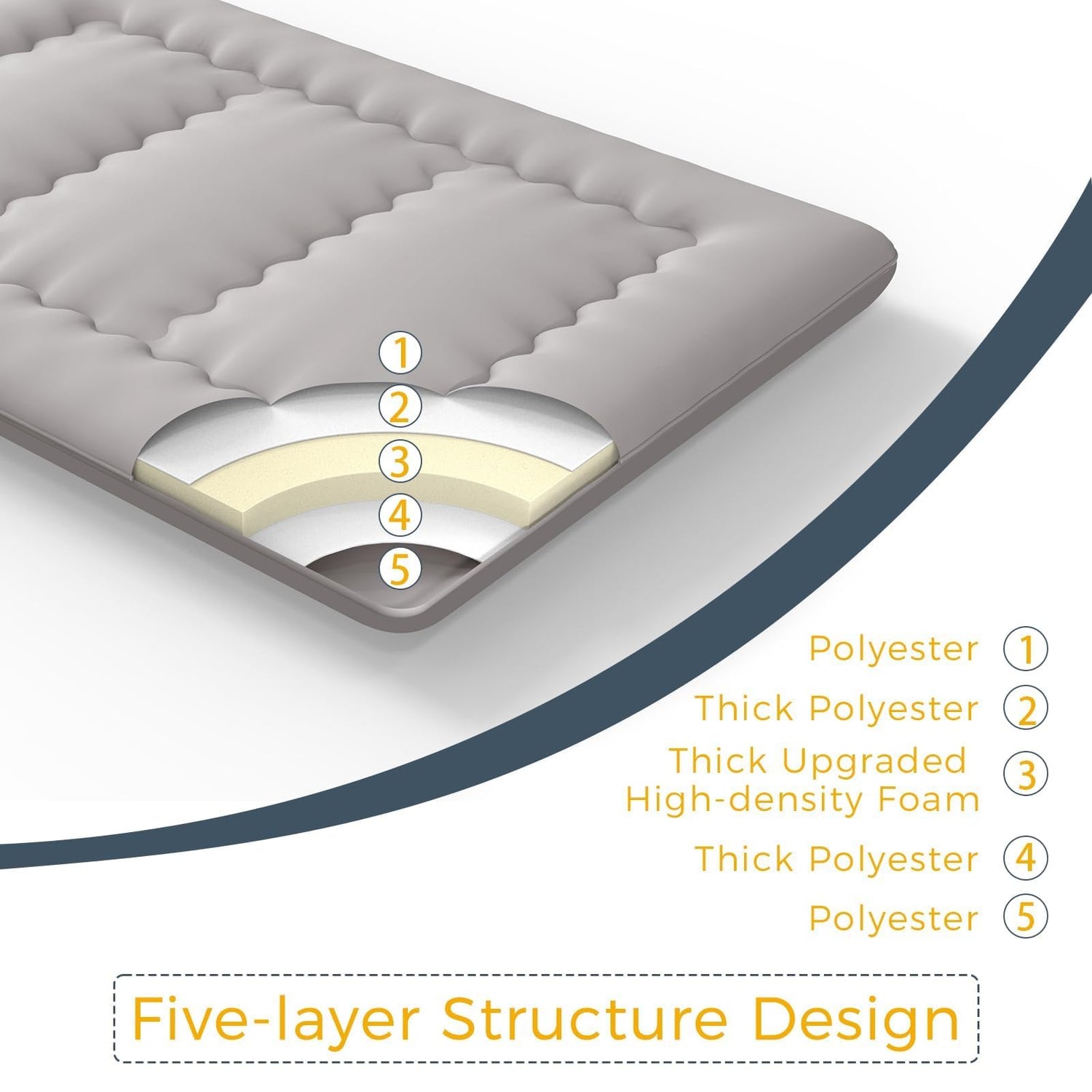 - Upgraded Workmanship: The mattress uses an upgraded technology, the cover is skin friendly polyester. More even filling makes the mattress more sturdy, durable, comfortable and healthy. The filling is thick polyester + thick upgraded high-density base support foam + thick polyester, which will offer a good support when you lying on the mattress