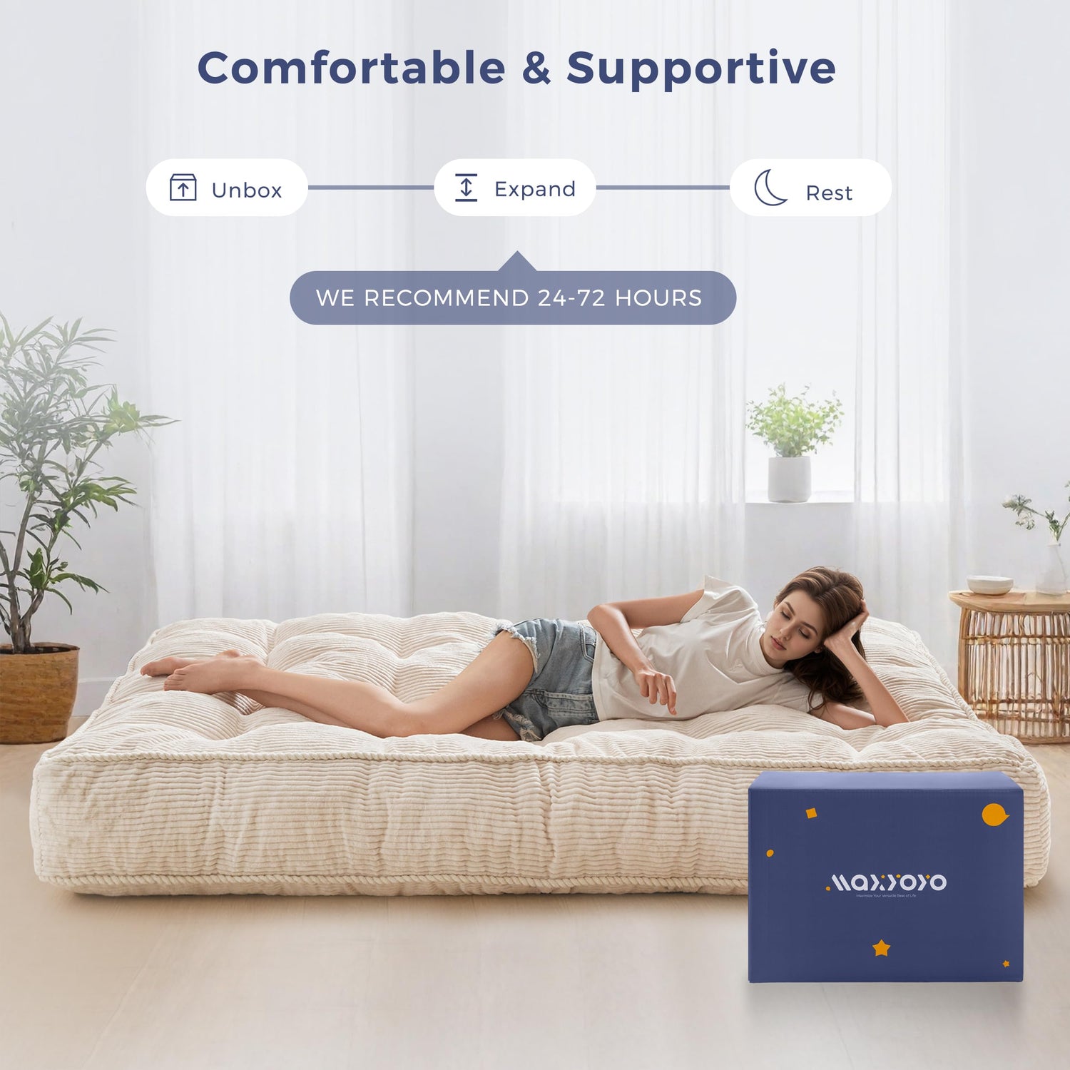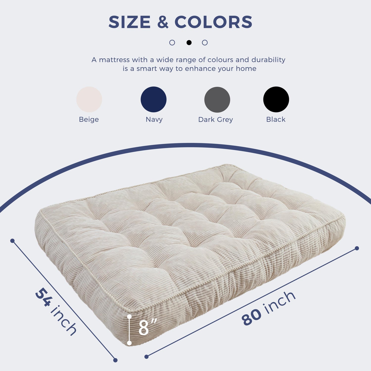 MAXYOYO 8" Futon Mattress Full Size, Ultra Thick Futons Sofa Couch Bed Tufted Sleeper Sofa Bed, Floor Mattress for Adults, Shredded Foam Filling (Frame Not Included), Beige