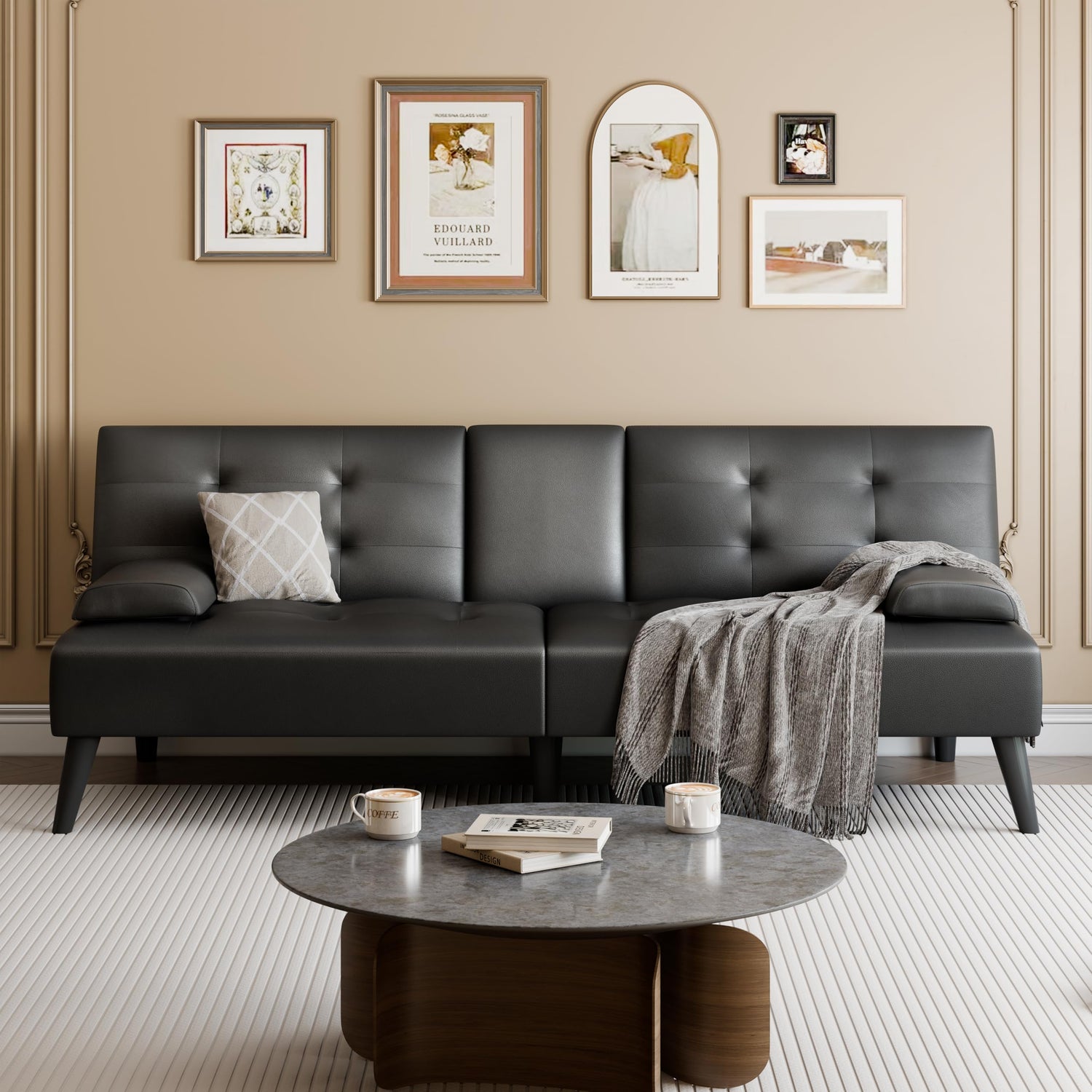 • [Comfortable Futon] This convertible sofa bed is made of tufted faux leather and filled with high-quality sponge, features a sturdy wooden frame and plastic legs. Our sofa bed emphasizes not only a comfortable experience but also durability, ensuring it can be used for many years