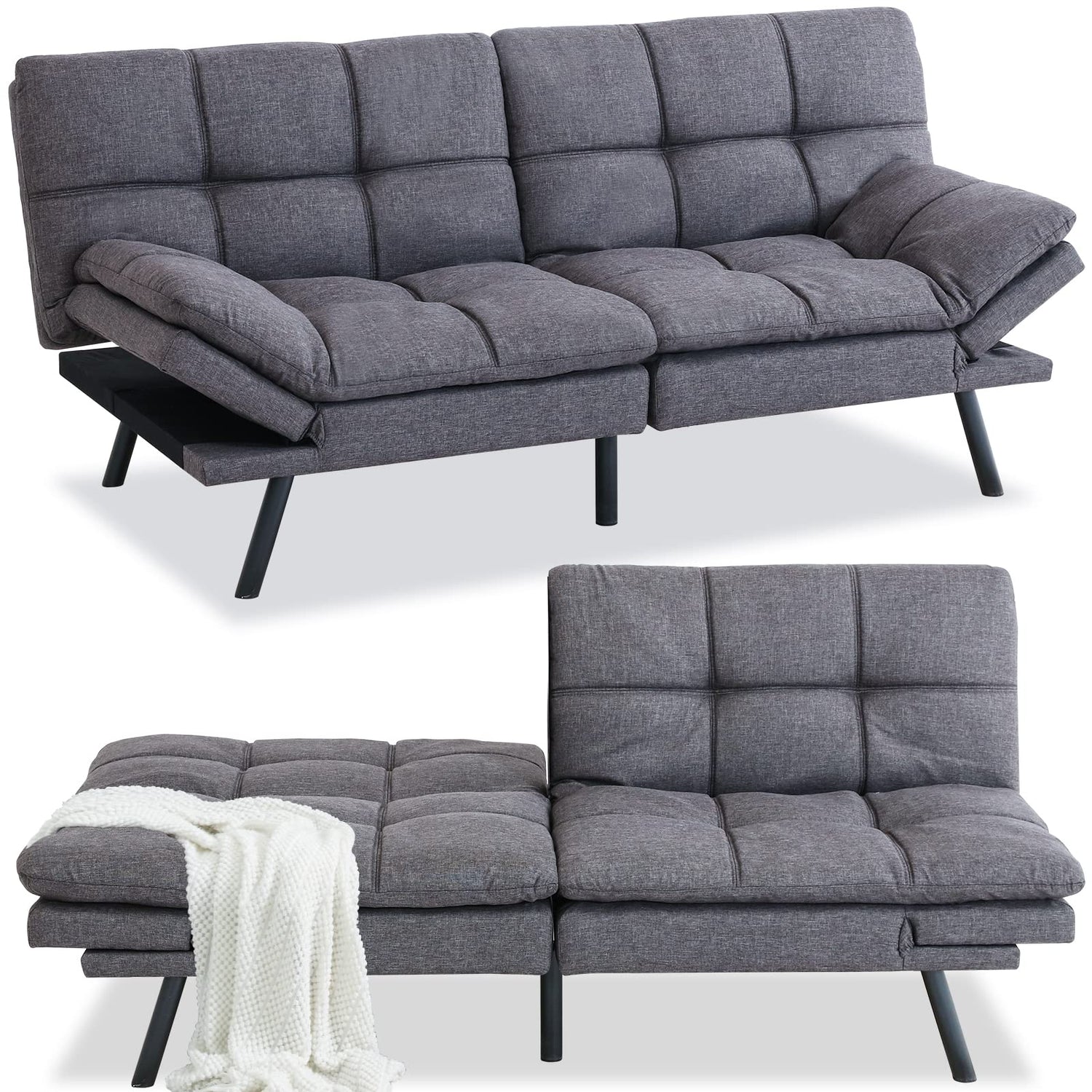 Opoiar Futon Sofa Bed,Modern Convertible Sleeper Sofa,Memory Foam Futon Sofa,71"x 33"x32"Compact Sofa,Loveseat Futon Bed,Breathable Linen Adjustable Sleeper Lounge Couch with Metal Legs,Dark Grey