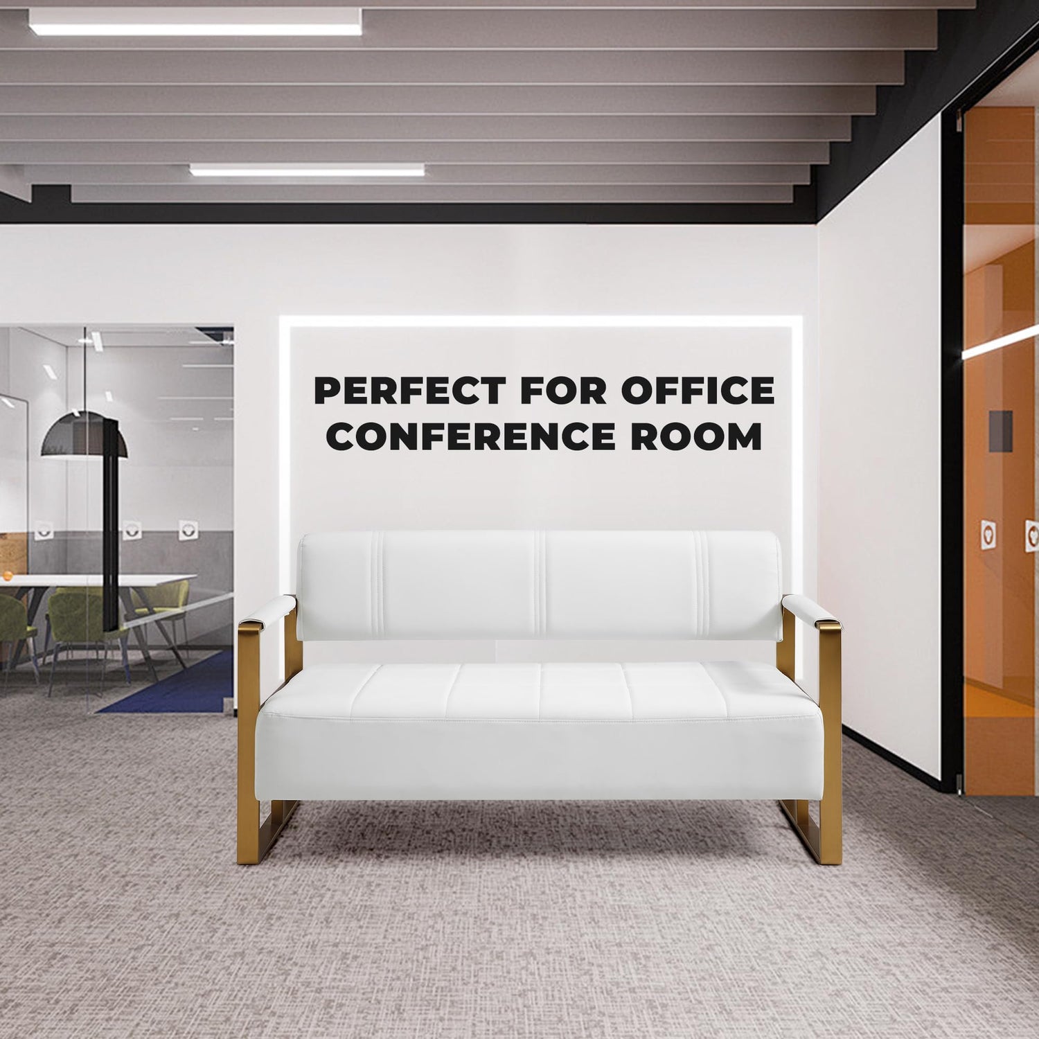 PBOGHLRD 57.9" Modern Leather Loveseat Sofa, Upholstery Faux Bonded Leather Accent Futon Couch with Metal Square Arms for Living Room, Office, Apartment (White)