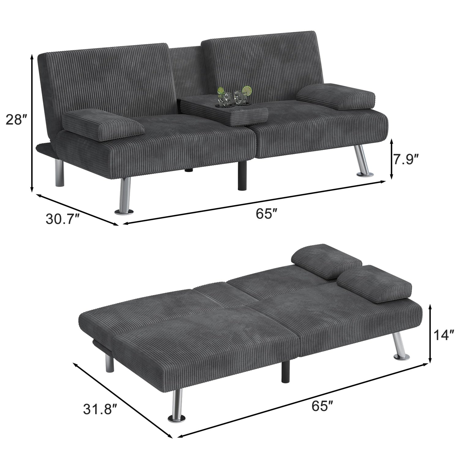 - Premium Quality: Crafted from premium corduroy and reinforced with chrome-plated metal legs, our sofa bed combines durability with thoughtful design, including removable armrests for added convenience.