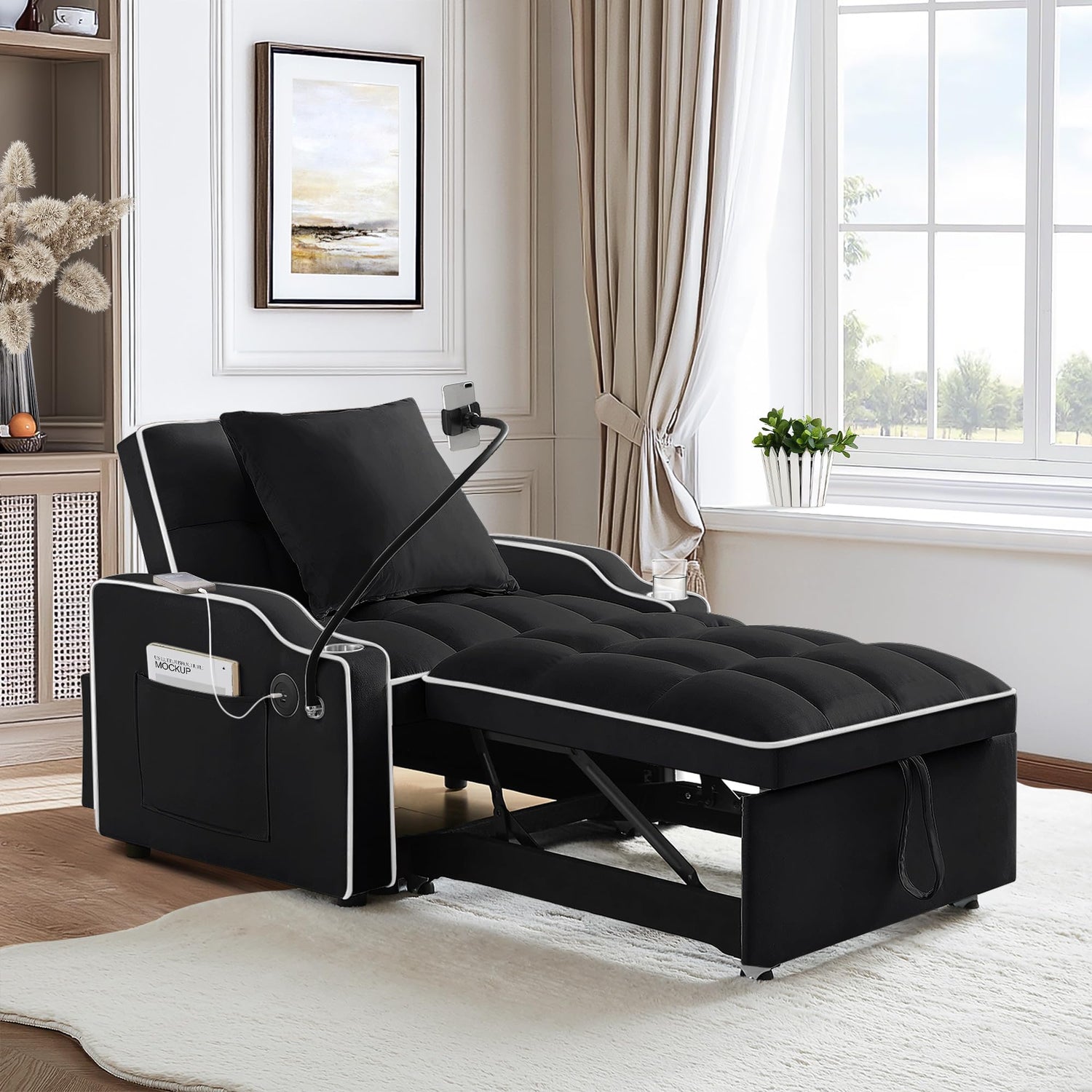 - 【Strong Structure Sleeper Sofa】This 3 in 1 sleeper sofa couch bed is made of sturdy wood frame and supported by resilient sinuous springs, high-density foam, soft velvet fabric,good foam-filled seats, it comes with plush lumbar pillows, offering a luxurious seating experience. This sleeper sofa bed has a USB charging ports and swivel phone which allowing you to charge your devices and release your hands, let you enjoy watching movies.