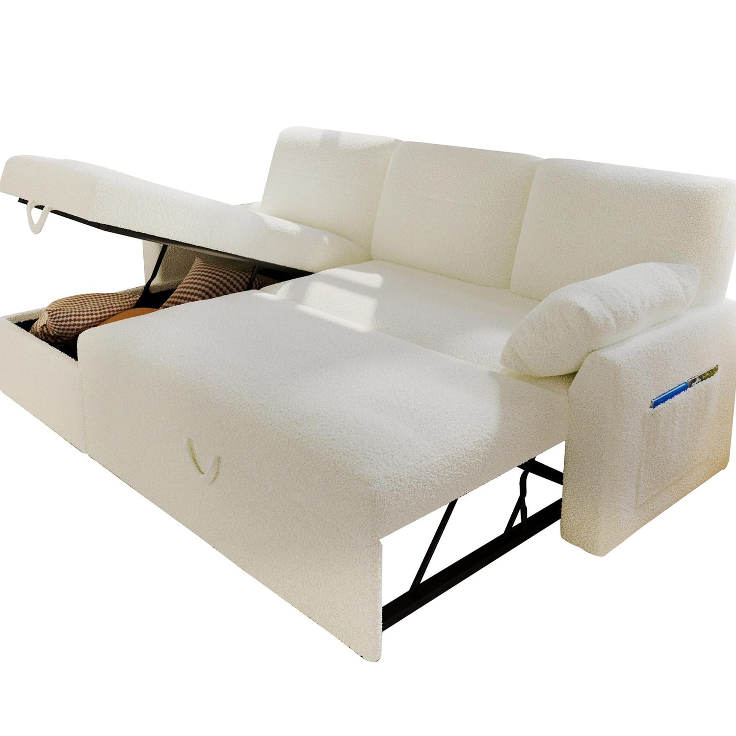 VanAcc Sleeper Sofa, Sofa Bed- 2 in 1 Pull Out Couch Bed with Storage Chaise for Living Room, Sofa Sleeper with Pull Out Bed, White Boucle Couch