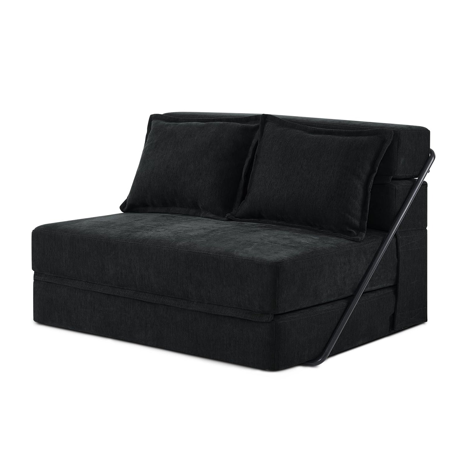- Freely Convert to Your Needs--Includes 2 throw pillows. This foldable sofa bed effortlessly converts into a floor couch, chaise lounger, mattress, or ottoman, catering to your diverse needs. Perfect for RV, camping trips, sleepovers, and vacations