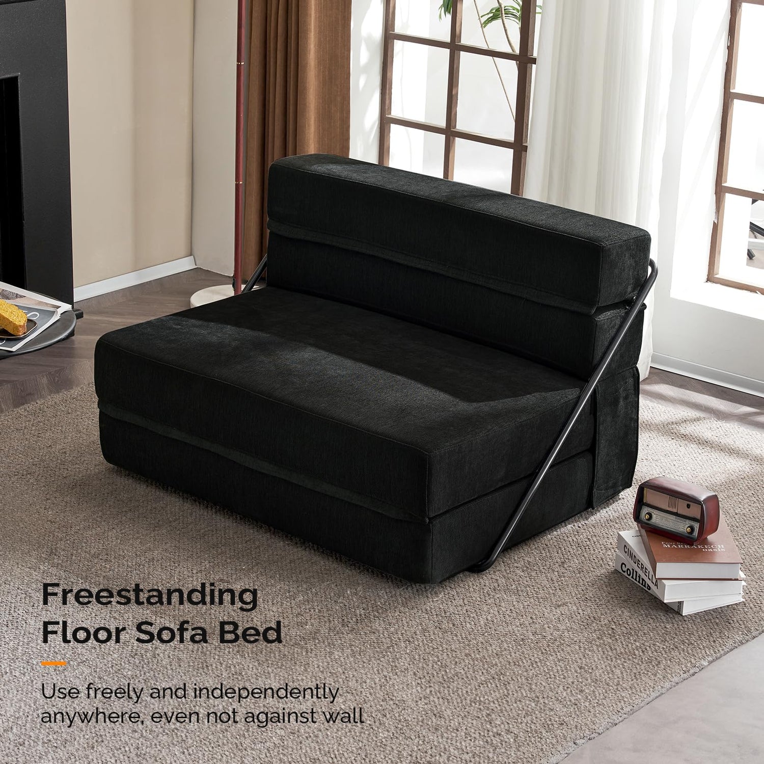 VINGLI Futon Sofa Bed Black Sleeper Sofa Chair Bed Floor Sofa Twin Small Couch Folding Mattress Couches for Living Room Floor Chair Freestanding RV Futon Couch for Indoor and Outdoor