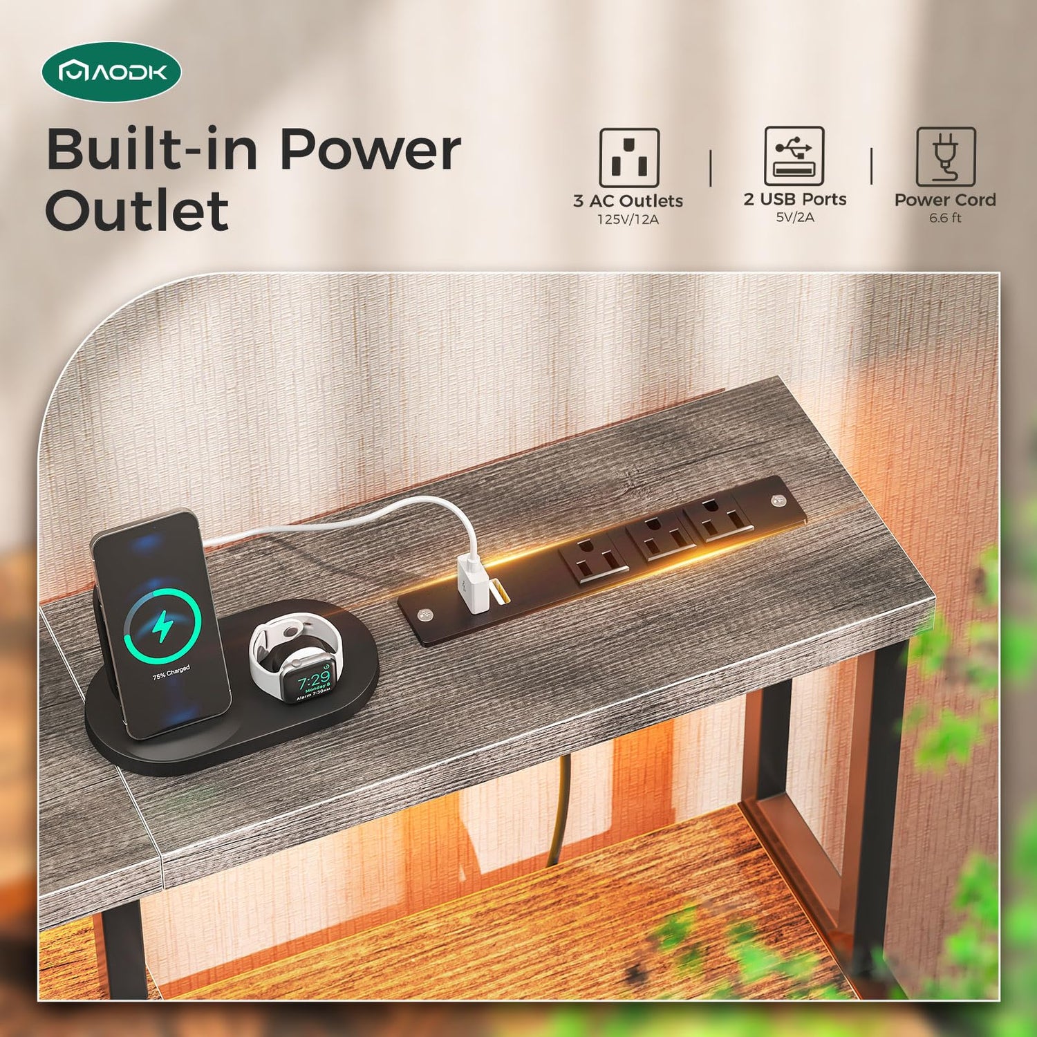 - ✔Built-in Power Outlet: The work desk is equipped with a power strip owning 3 AC outlets & 2 USB ports. You can easily and conveniently charge your smart phone, gaming gear or Bluetooth devices when playing games or working at home.